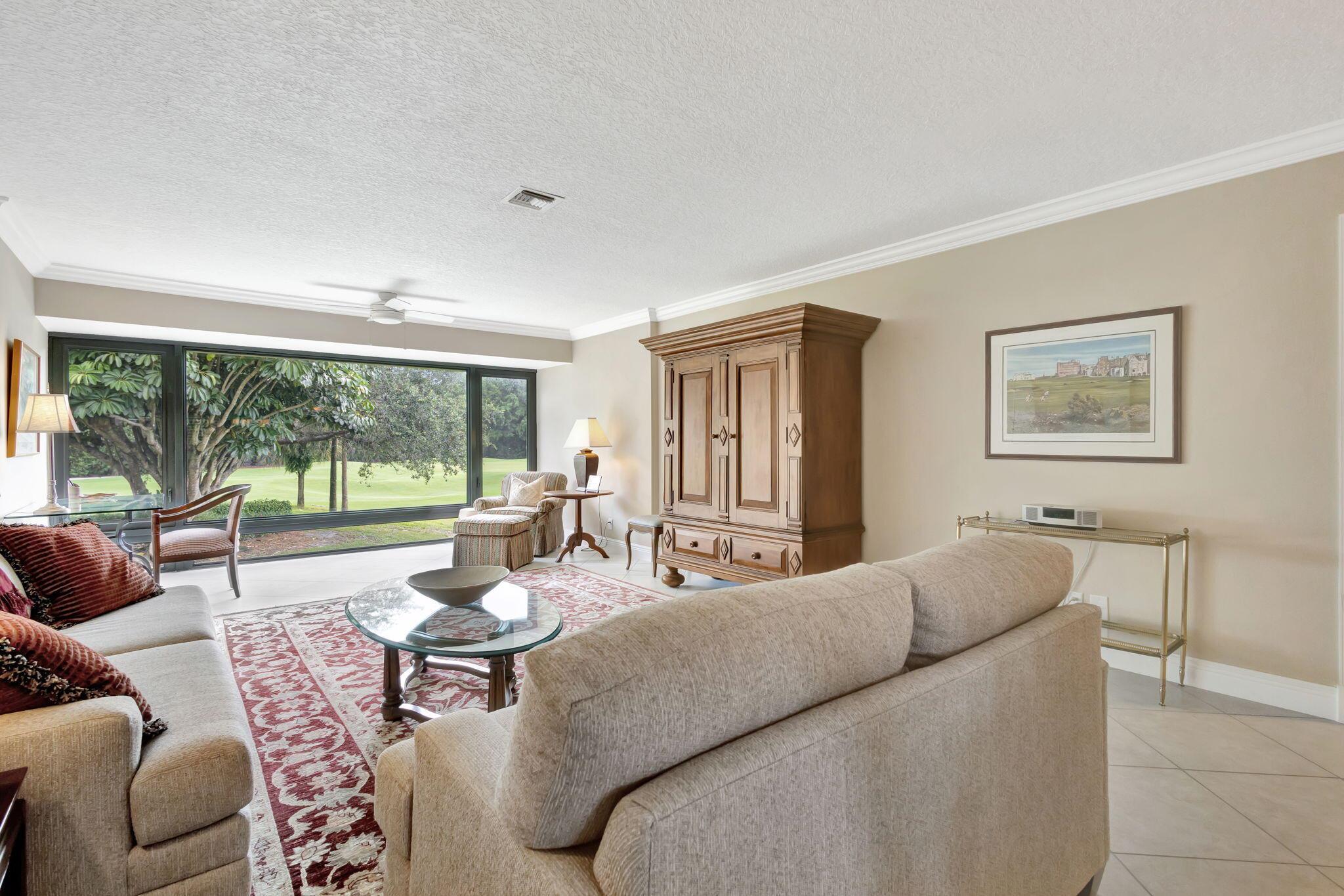 A serene private retreat, this 3 bedroom 2 bath residence boasts beautiful golf course views from all windows of both North and South golf courses. Water views in primary living areas in this boutique condo community. Oversized kitchen with sunroom/breakfast nook. Spacious living area with floor to ceiling windows, showcasing the expansive views of the 11th fairway and green. Large rooms with plenty of storage. Located close to area pool and a short walk to the clubhouse. Quail Ridge is a mandatory membership private club community offering many upscale amenities - golf, tennis, pickle ball, clubhouse with dining and social events in a vibrant community atmosphere.