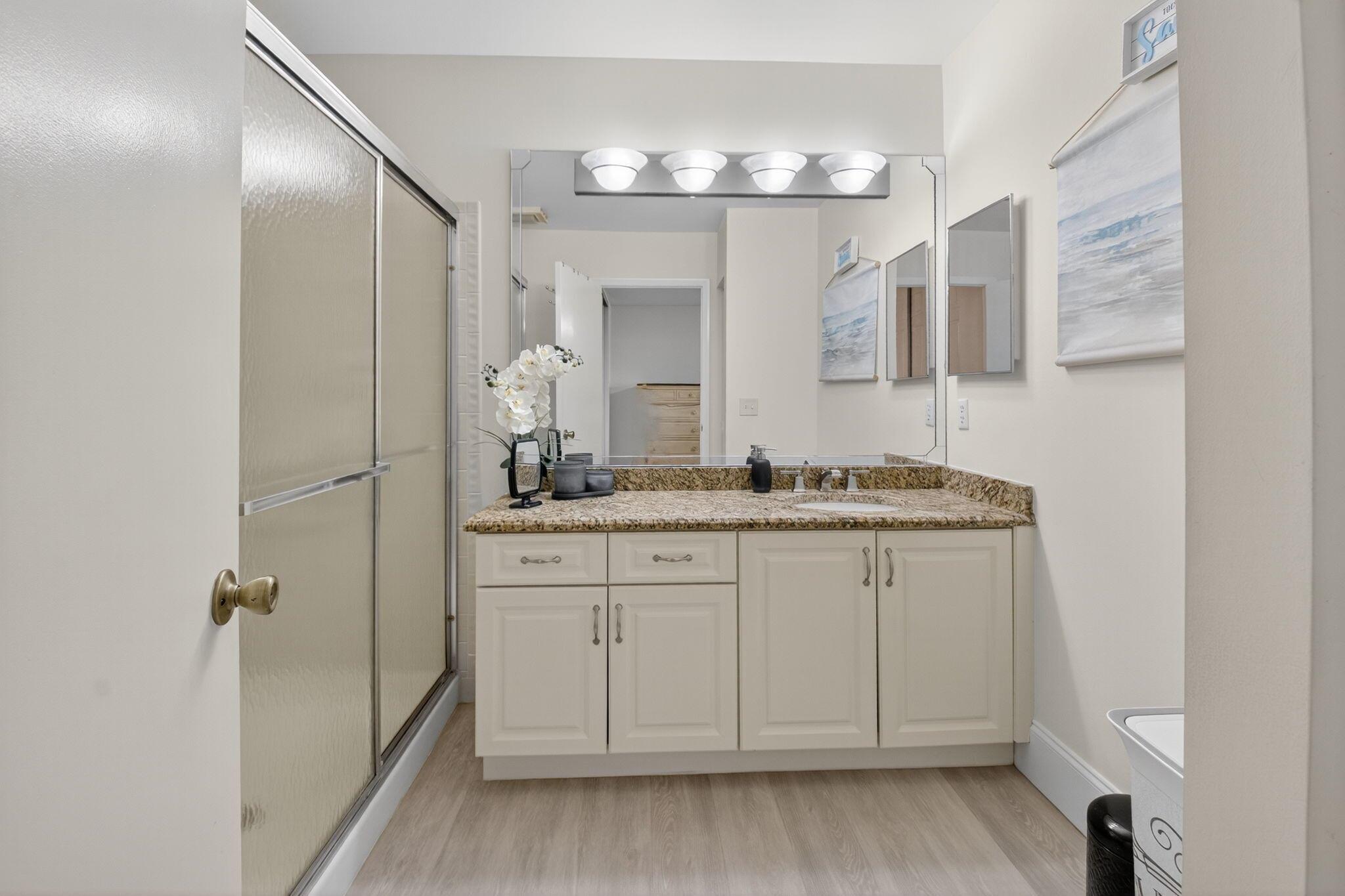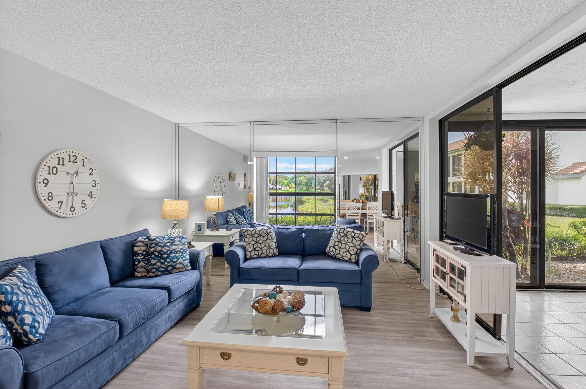 Discover this charming and quaint first floor Imperiale Model condo in the sought-after Platina community. Boasting two spacious bedrooms and two full bathrooms, this inviting residence offers comfort and convenience with a lake view. Move right in! This home is being sold with everything inside, including the tasteful decor and furnishings--just bring your suitcase and start enjoying your new home. Prepare meals in style with beautiful granite countertops and modern stainless-steel appliances. The kitchen's eat-in design adds functionality for casual dining. Enjoy privacy with a layout that separates bedrooms, making this condo perfect for your own use and guests.