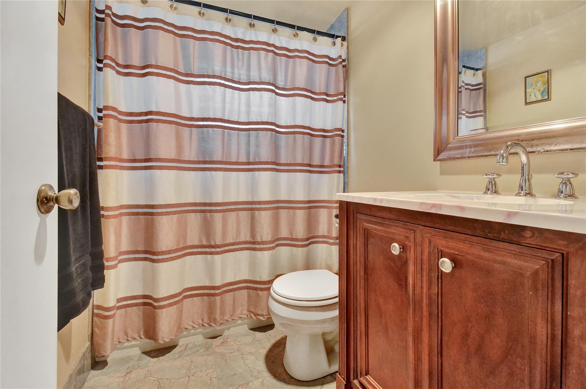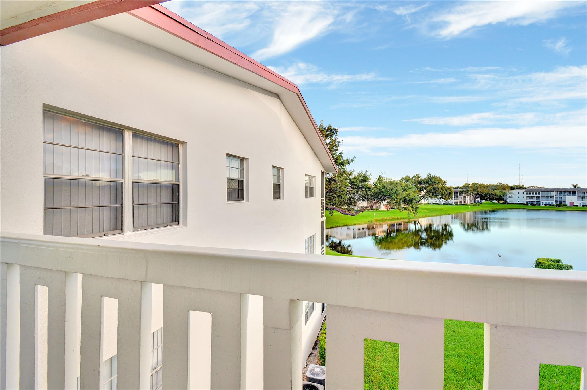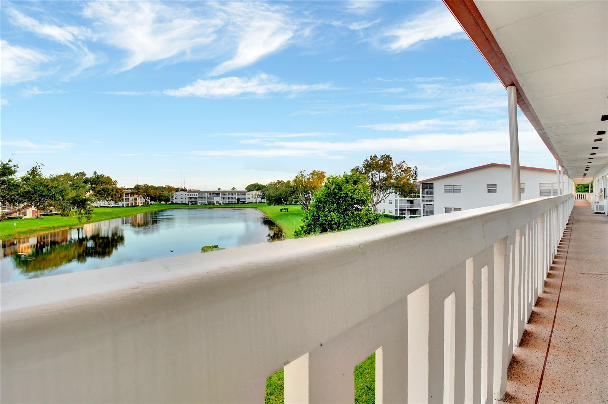 Unique 3rd Floor Corner Oasis, that is meticulously maintained & turn-key ready. Enjoy breathtaking dual lake views (front/back), creating a serene, resort-like ambiance at twilight. This bright open-concept home features a modern kitchen, tile floors, knockdown ceilings, & Hunter Venetian blinds. The primary suite boasts new vinyl plank flooring; guest room offers plush carpet & a large walk-in closet. The 17-ft rock-pattern tiled terrace extends your living space. The unit includes a high-end Himolla Siegfried white leather sofa w/ a large plexiglass image over the couch resembling dual open windows looking onto a serene lake w/ a sailboat, which ties in to this condo's setting. Steps from pool & designated parking spot. Can rent immediately, WOW! This unit is special & won't last long!