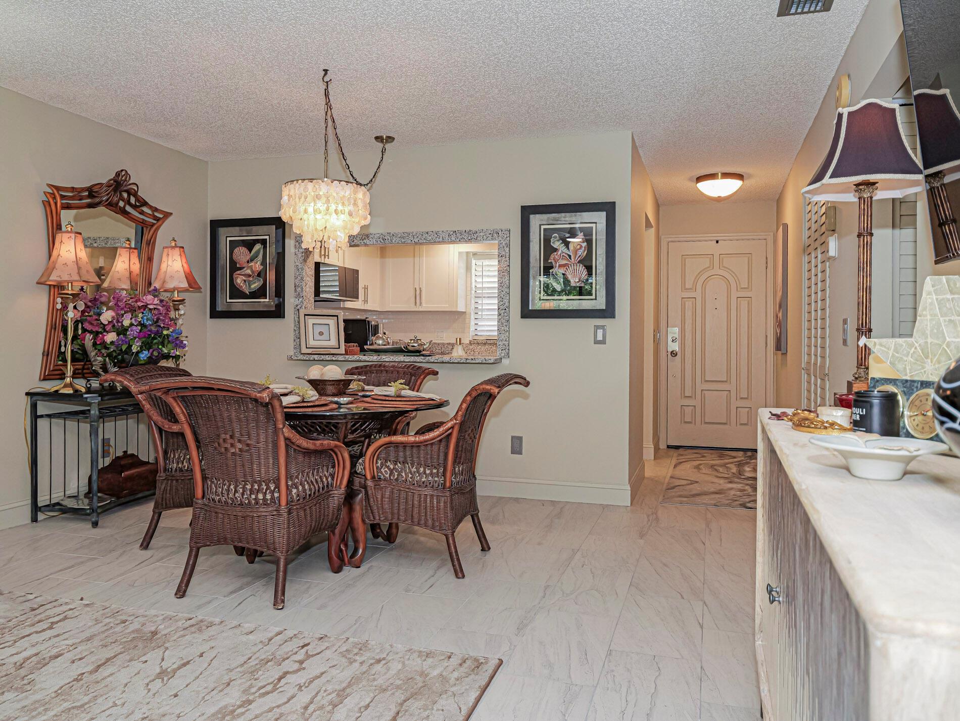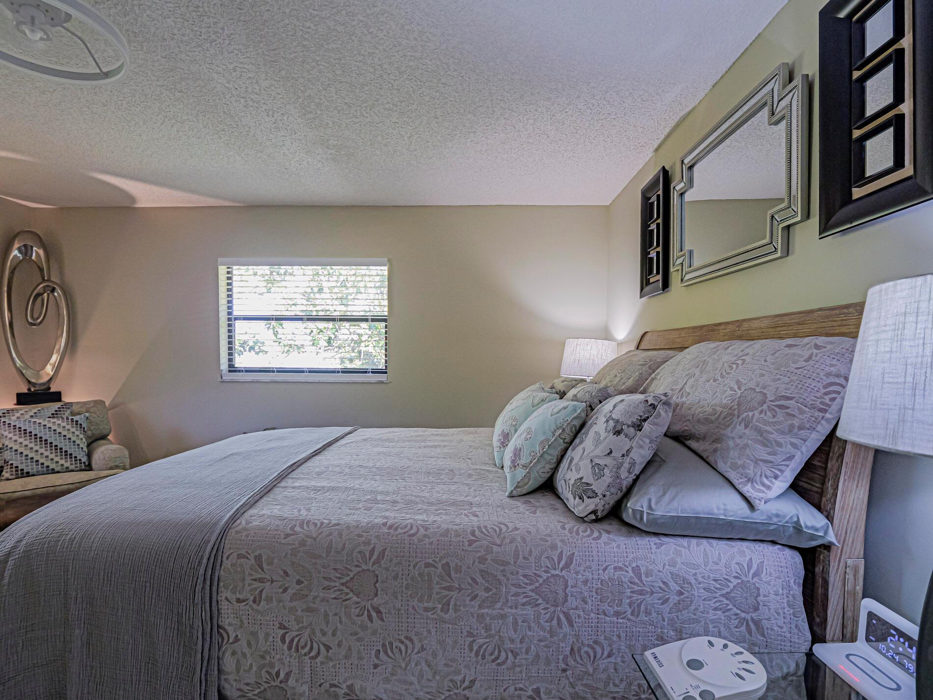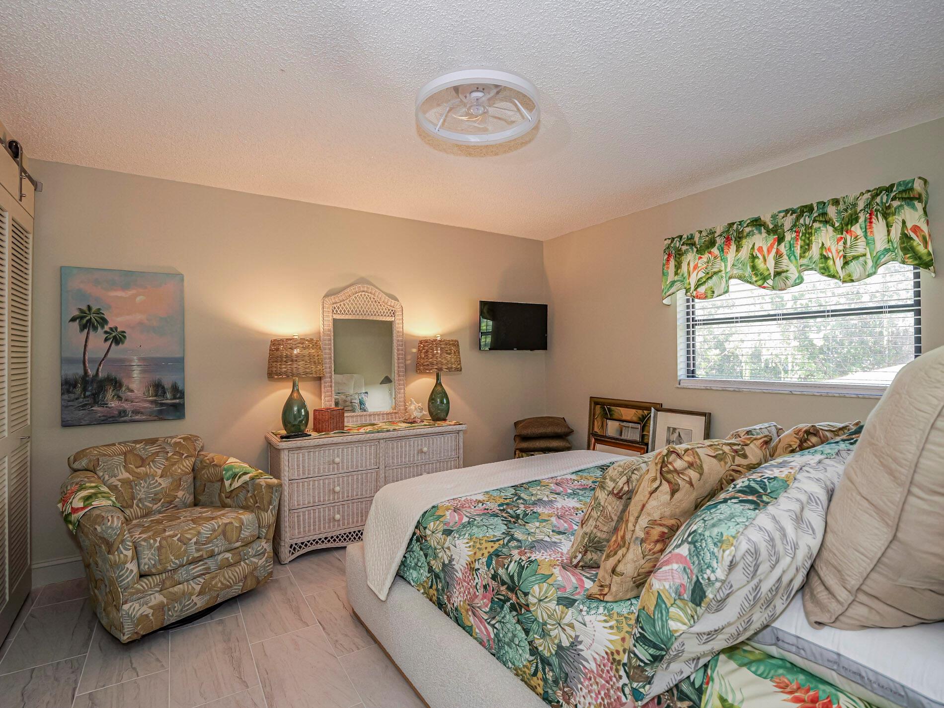 Being sold furnished, this completely remodeled split BR plan 2/2 has nearly 1150 sq ft. Gorgeous kitchen with stone counters and stainless steel --all newer appliances and fixtures. Stone tile flooring throughout. Spacious living-dining area expands to enclosed glassed in porch with view or garden area. Large primary BR with updated bath - 2nd BR with queen bed and full bath in hall. Designer touches throughout! Oak Park Terrace is just 2 miles to beaches and closer to shops and stores. Complex has heated pool and tennis. 55+ with no pets allowed -- coin op laundry.