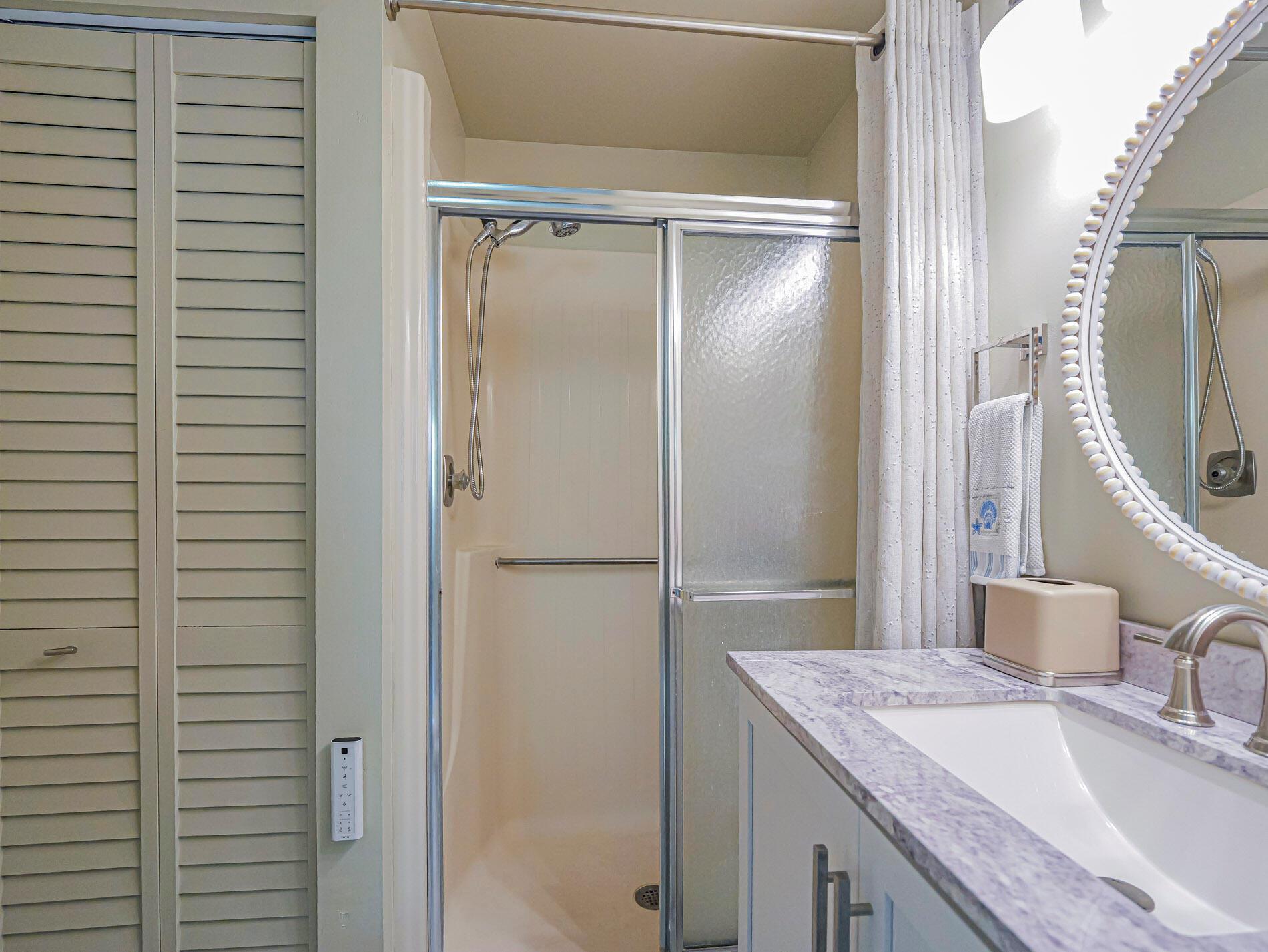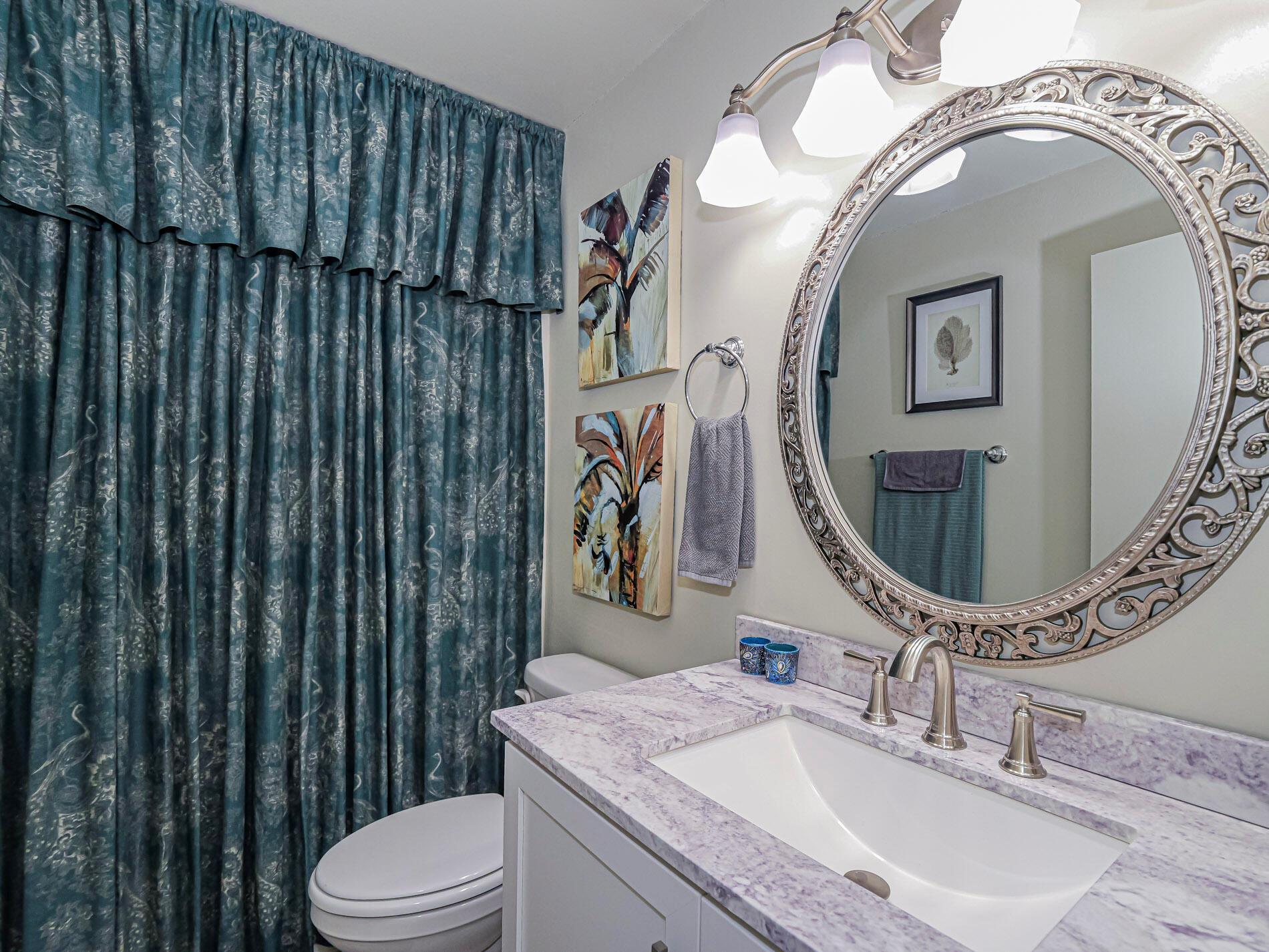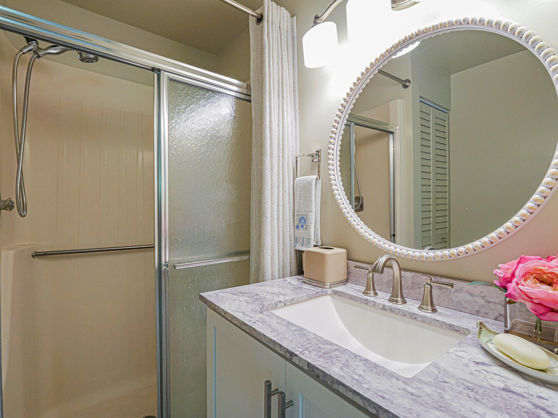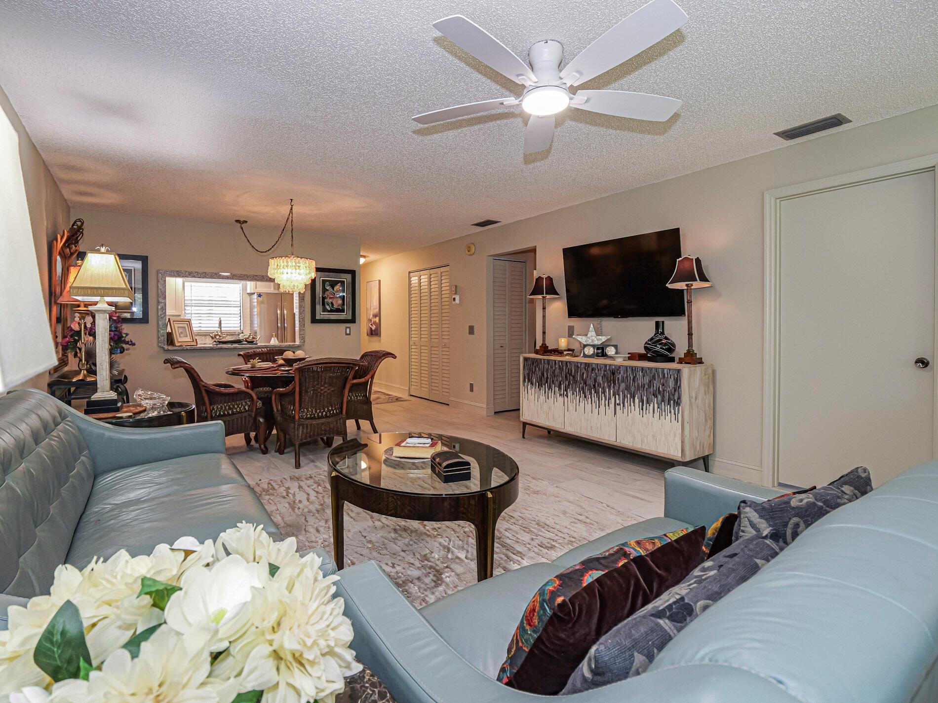 Being sold furnished, this completely remodeled split BR plan 2/2 has nearly 1150 sq ft. Gorgeous kitchen with stone counters and stainless steel --all newer appliances and fixtures. Stone tile flooring throughout. Spacious living-dining area expands to enclosed glassed in porch with view or garden area. Large primary BR with updated bath - 2nd BR with queen bed and full bath in hall. Designer touches throughout! Oak Park Terrace is just 2 miles to beaches and closer to shops and stores. Complex has heated pool and tennis. 55+ with no pets allowed -- coin op laundry.