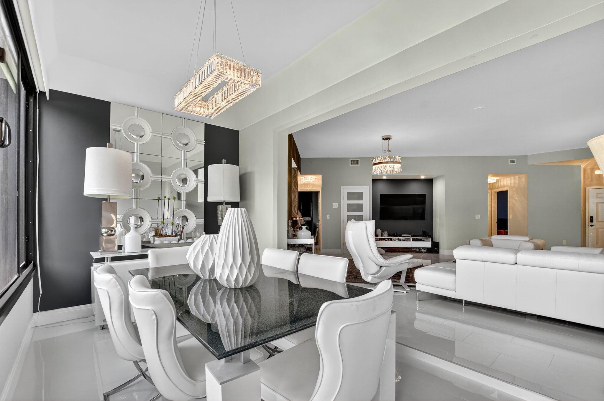 Fully renovated 2BR/2BA ground-floor corner condo in La Paz at Boca Pointe, an all-ages, guard-gated community with optional club membership. 1,636 total sq ft (includes Florida room & lanai) with no stairs or elevators required. Modern kitchen with white gloss cabinets, quartz leather counters, backlit stone geode pass-through, and Samsung appliances. Dining room opens to a glass-enclosed Florida room with walkout access and tranquil lake and garden views. Kitchen and primary suite open to a screened lanai. Porcelain tile floors, motorized blinds, full impact glass, and storm shutters. Primary bath features jetted tub, frameless shower, and double vanity. Guest bath with sleek stall shower. In-unit washer/dryer, A/C, assigned parking. Two pools, tennis, clubhouse, Covenient to ALL