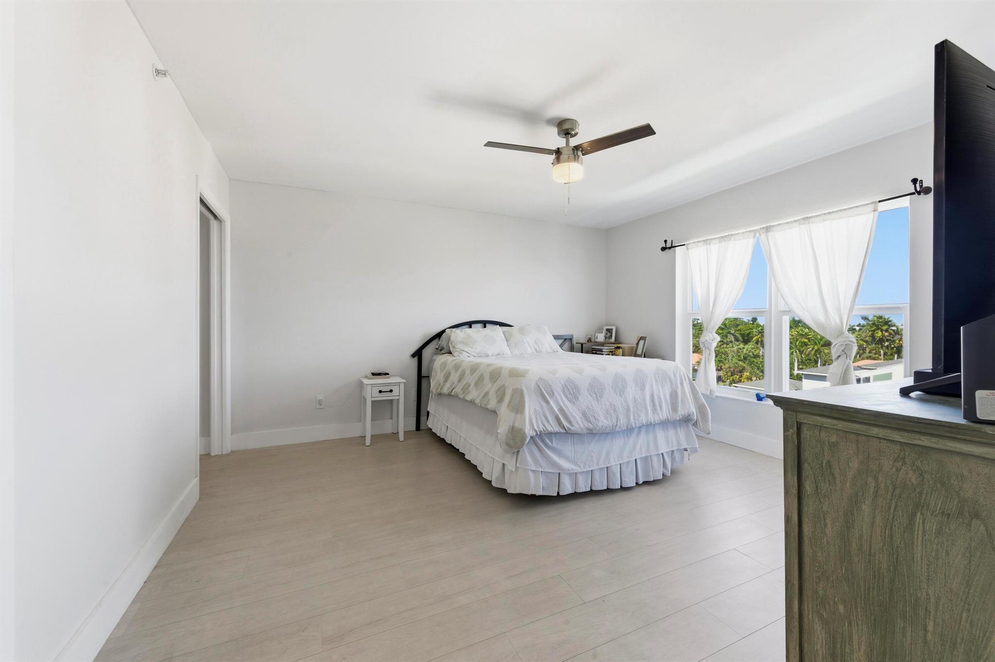 Experience elevated coastal living in this fully renovated 2023 penthouse! One of the few residences in Hidden Harbour offering unobstructed northeast panoramic views of the Intracoastal and Palm Beach Island from every room. This modern, open-concept home showcases a designer kitchen with crisp white shaker cabinetry, quartz countertops, and stainless-steel appliances. Upgraded interior doors, including elegant pocket doors, add a touch of sophistication throughout. The serene primary suite offers direct balcony access, a spacious walk-in closet, and a beautifully appointed en-suite bath. Additional highlights include new impact-rated windows and doors, in-unit laundry, and a 2021 central A/C system. Step onto the covered balcony to enjoy the coastal breeze and breathtaking sunrises!
