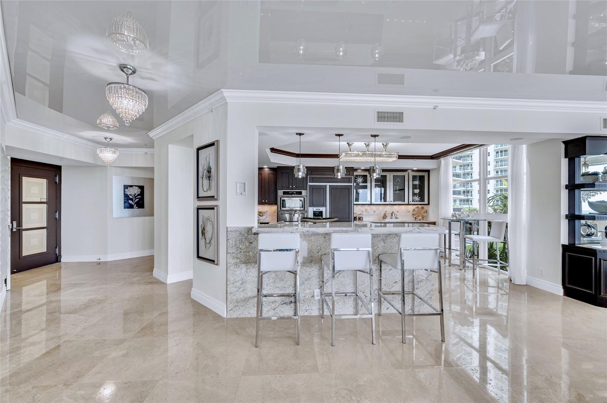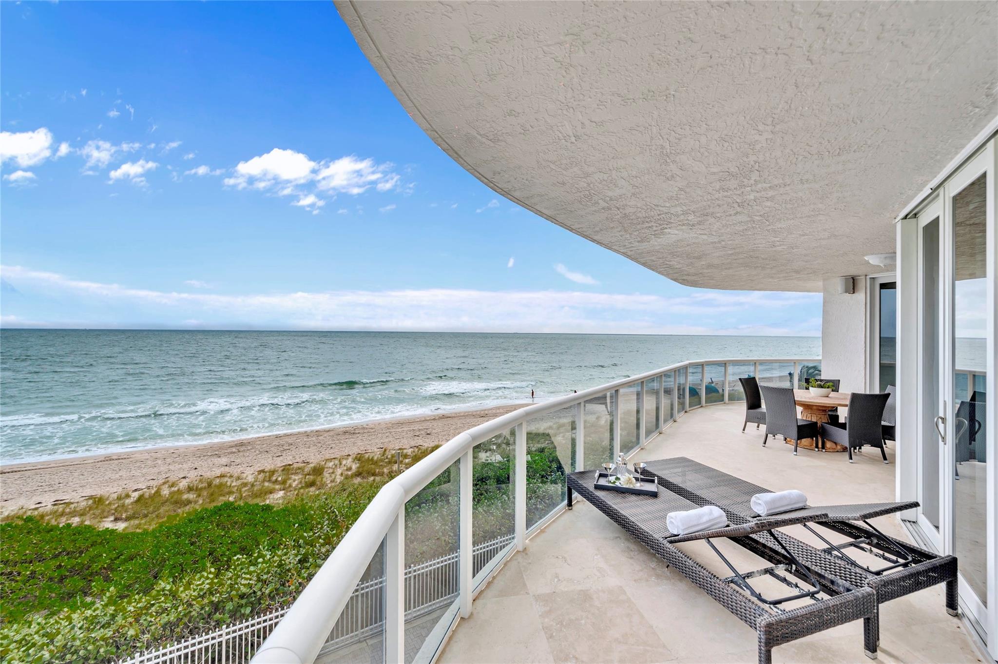 Beach House vibe in this exquisite residence embraced by sand & sea at L'Hermitage-premier luxury gated comm. w/ over 10 acres of prime oceanfront. This corner residence just above the sand, provides direct access to the pool & recreation deck located on the same fl. Incredible wraparound terrace w/ unobstructed views of the ocean waves. Open kitchen w/ island & breakfast nook framed by spectacular ocean views complemented by reflective ceilings in living area. Upon arriving home enjoy direct elevator access from lobby, opening into private foyer w/ stylish glass entry door. Resort-style amenities incl: tennis courts, poolside café, concierge, each attendant, pet park & more. 2 pets are welcome. Included 2 parking spaces & valet serv. Main. fee incl. a credit at L'Hermitage Bar & Grill