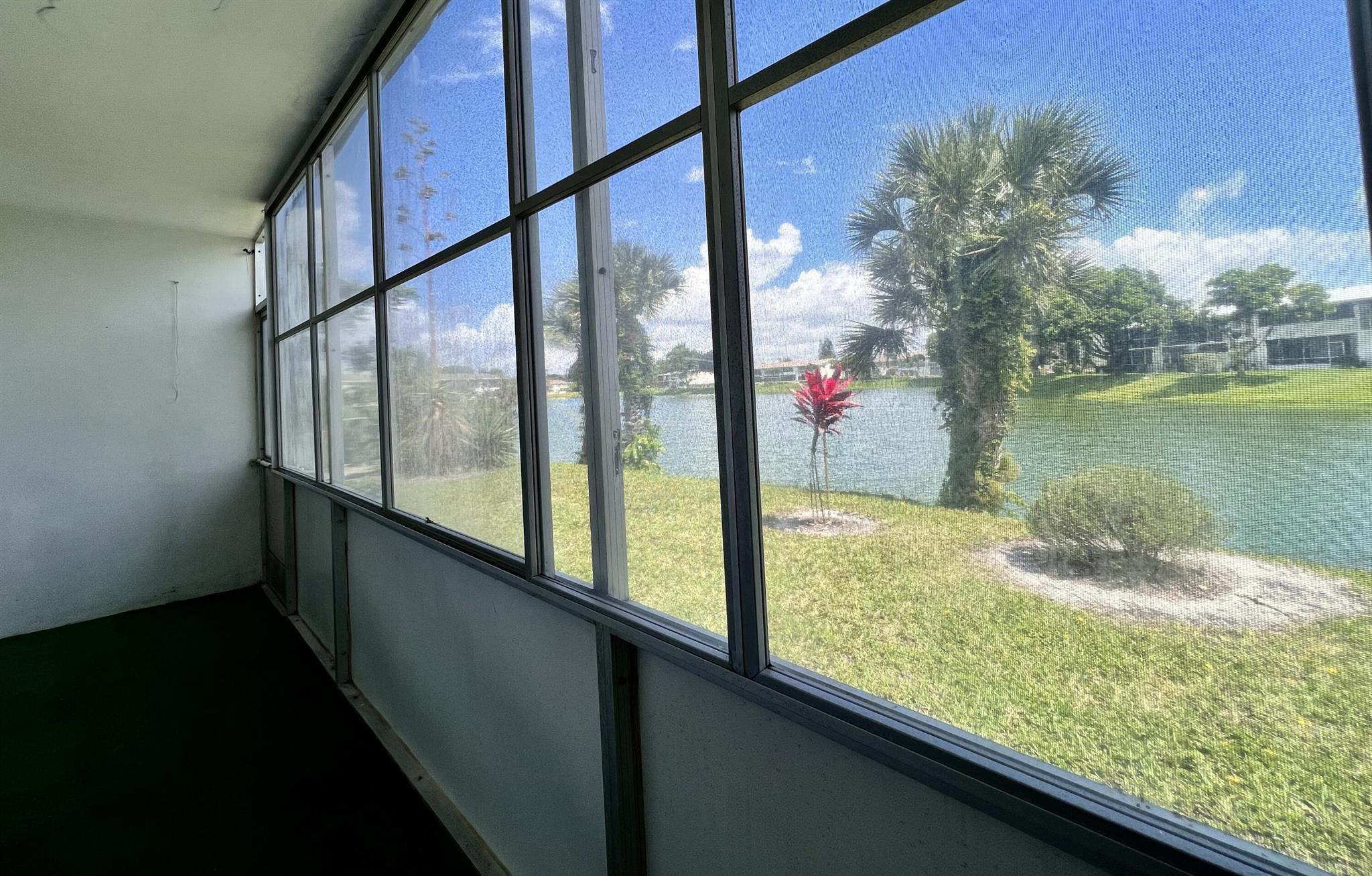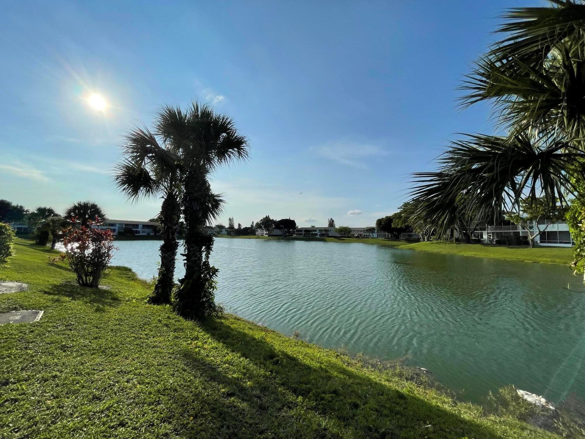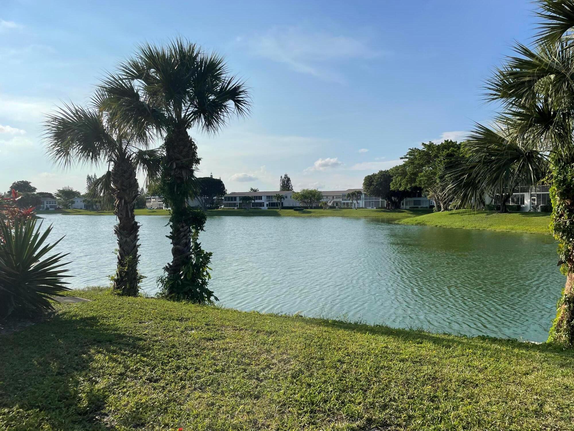 Find your own piece of paradise in this first floor, 2 bedroom and 2 full bathroom unit with a breathtaking lake view in 55+ Century Village. Laminate flooring and updated kitchen. The spectacular water view is complete with gorgeous palm trees and lush greenery from your terrace. The perfect oasis for you to relax and luxuriate in the Florida sunshine. Large bedrooms with sliders to your private patio.