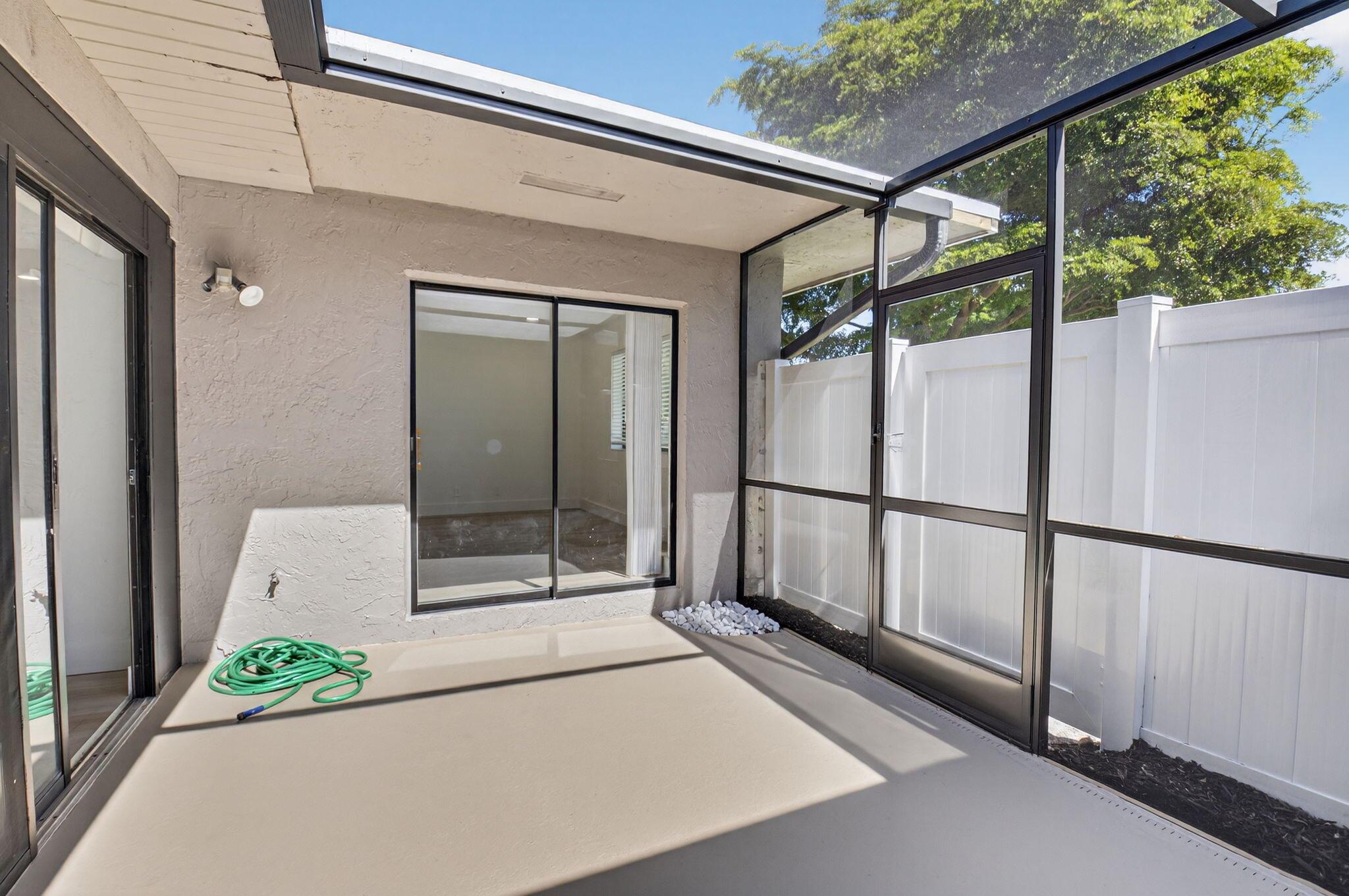 STUNNING REMODEL! This gorgeous 2BR/2BA villa in a 55+ community is fully updated with NEW roof, NEW AC, NEW electrical panel, NEW stainless appliances, NEW washer & dryer, NEW patio screen, and NEW fence all completed 2025. Enjoy open-concept living with modern finishes--high-gloss and wood-tone cabinets, quartz counters, and matching backsplash. Both baths feature frameless glass showers and LED mirrors. Vinyl flooring, recessed lighting, and stylish fixtures throughout. (living/dining room and master bedroom room pictures are virtually staged). Low HOA ($290/mo) includes lawncare, community pool & clubhouse. Prime location near Downtown Delray, Atlantic Ave, beaches, restaurants, shopping & Delray Med Center. 650 credit score required by HOA. Move-in ready--schedule your showing today!