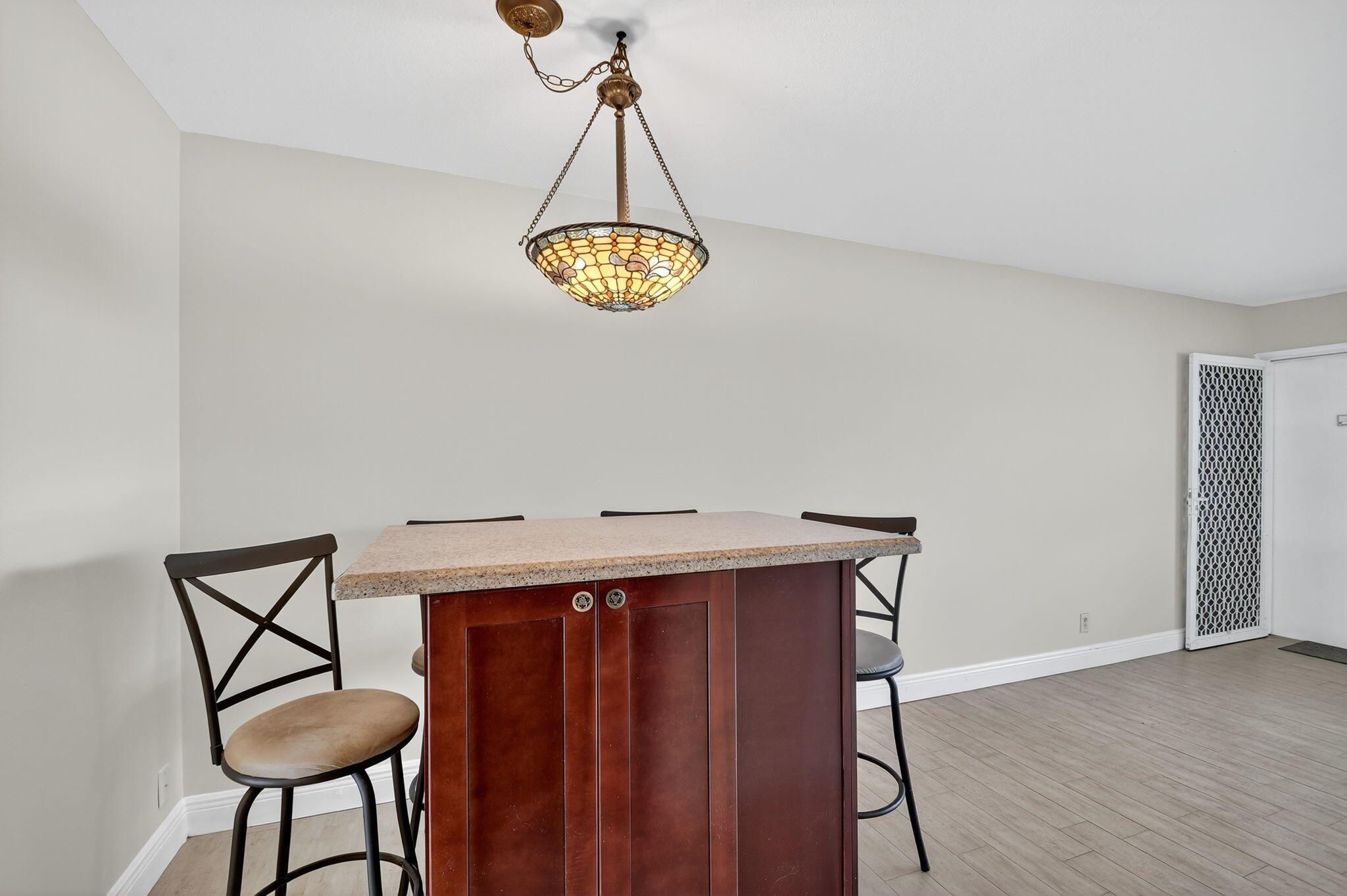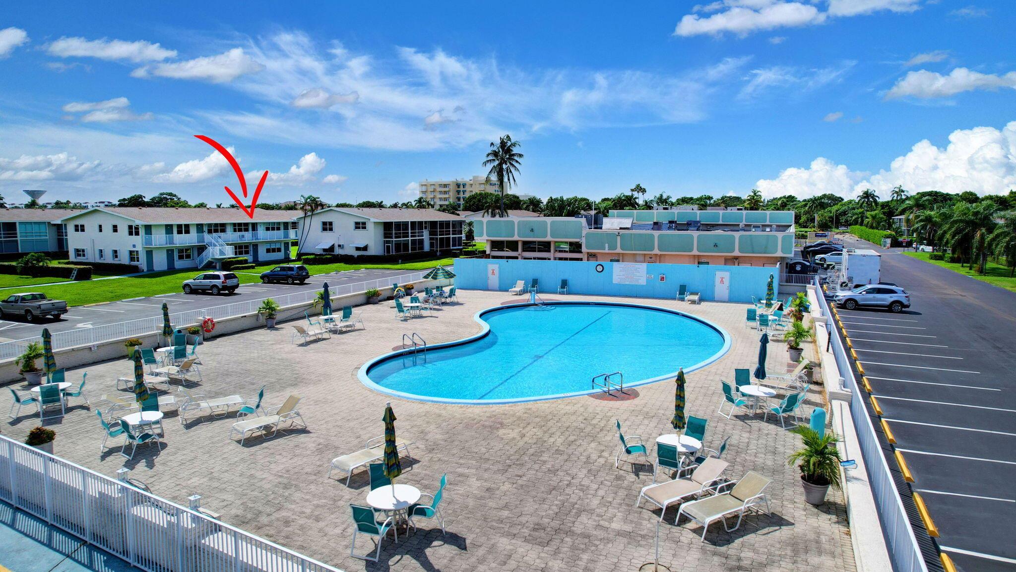 Beautiful condo directly across from the pool & clubhouse! Enjoy pool views from this upgraded condo! Remodeled wood kitchen, granite counters, stainless appliances with new refrigerator & new stove. Freshly painted & plank style floors. New blinds just installed. Matching pub table with storage for dining. Upgraded bathroom shower with tub. Large covered & screened balcony. Accordion shutters for protection. Intracoastal community - walk by the seawall & watch the boats go by. Great downtown location walk to restaurants, shops & festivals, Active community assoc states 55+ with social clubs, cards/games, dance & events! Clubhouse remodel in progress. Many amenities to enjoy including community pool, shuffleboard & Bocce Club courts!