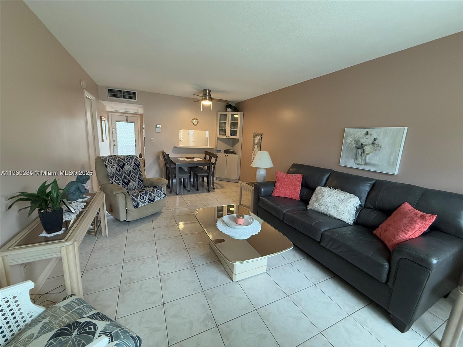 TURN-KEY FURNISHED 1 bed/ 1 bath condo located in the 55+ community of Lauderhill east. No carpet found throughout the unit, all tile. Hurricane impact windows except the ones in the bedroom/FL room. Bathroom has both access from the primary bedroom and the hallway for guests. Shower/bath combo and hurricane impact window. Lots of closet space and bedroom is very spacious! Living area leads to the Florida room that overlooks the pool area. Building has common laundry, elevator, locker and assigned parking. Community offers plenty of amenities such as clubhouse, pool, shuffleboard, guest parking, & much more! Rentals allowed after 1 year. No current special assessments