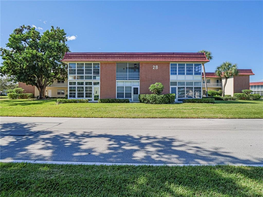 Desirable turnkey + highly sought-after 2 bed, 2 bath first-floor B-plan corner unit in prime location across from pool, clubhouse, tennis + shuffleboard! Immediate $10,000 income inheriting seasonal tenants if closed by December 31st! Thoughtfully remodeled interior features a spacious open plan w/ white kitchen + stainless appliances. This unit radiates cozy charm, bathed in natural light + complemented by an enclosed porch nestled beneath majestic oak trees. Vibrant 55+ community brimming w/ activities to embrace a lifestyle that's equal parts relaxed + rewarding. Close to the beach!