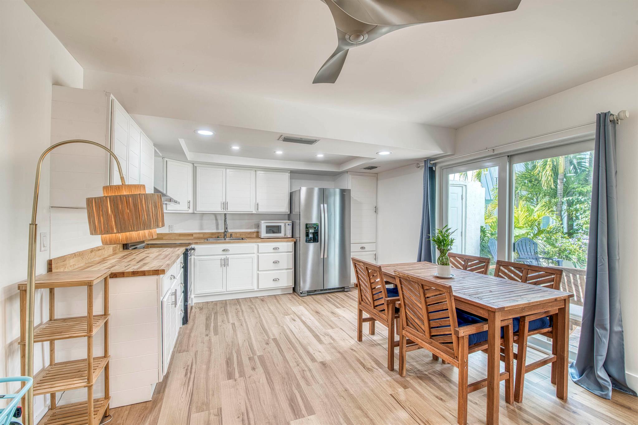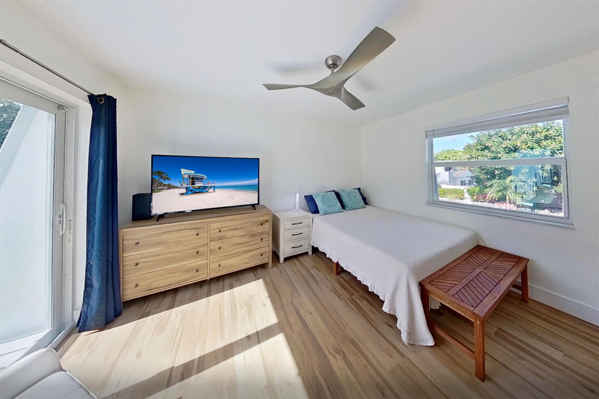 Mere steps from the ocean and beach access, this beautifully renovated Palm Beach Shores condo captures the essence of coastal living. Recently updated from top to bottom, the residence features a 2022 metal roof, all CGI impact windows and sliders, brand new washer/dryer, brand new refrigerator, and a brand-new A/C unit (Sept 2025) with a 10 year guarantee included for comfort and peace of mind. Inside, enjoy new wood-look flooring throughout, updated bathroom vanities, and a bright kitchen with white cabinetry and butcher-block countertops that complement the beach-inspired decor. The spacious living room overlooks a lush butterfly garden and a romantic Spanish-style patio, offering a serene setting for morning coffee or evening gatherings. This home is perfectly designed for both