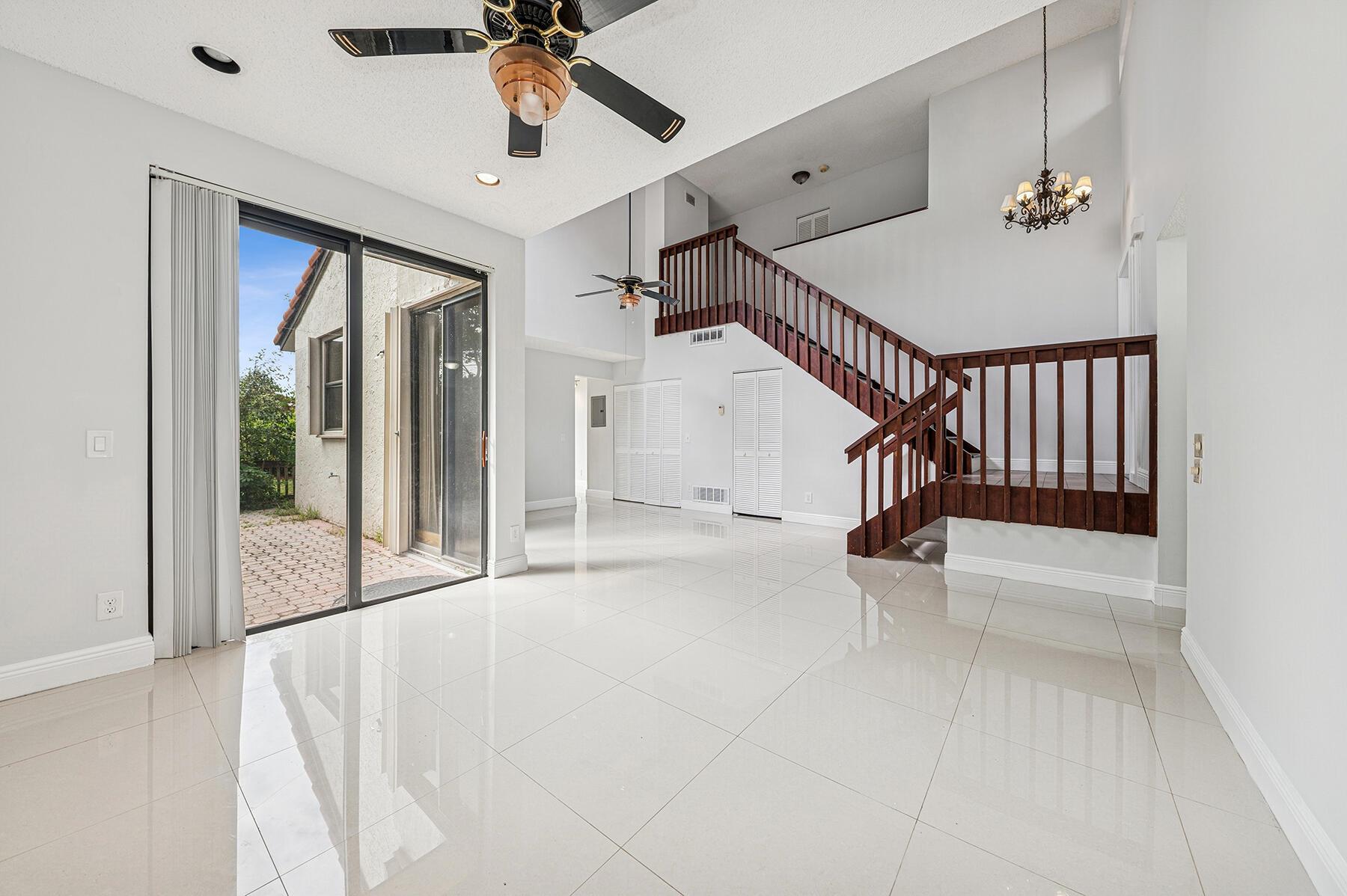 Welcome to this 3 bed, 3 bath townhouse located in one of Boca Raton's most sought after gated communities with 24-hr manned security. As you step inside, you're greeted by vaulted ceilings that enhance the open feel of the living space. The home features a desirable floor plan with one bed & a full bath located on the first floor & two spacious en-suite bedrooms upstairs. Freshly painted throughout with neutral tile flooring on the main level & wood-look flooring upstairs. The kitchen has granite countertops & SS appliances with a washer/dryer in unit. Enjoy the outdoors from your private enclosed backyard with a charming patio. This residence is walking distance to Town Center Mall & Boca Raton Tennis & Aquatic Center, placing premier shopping, dining & recreation right at your doorstep