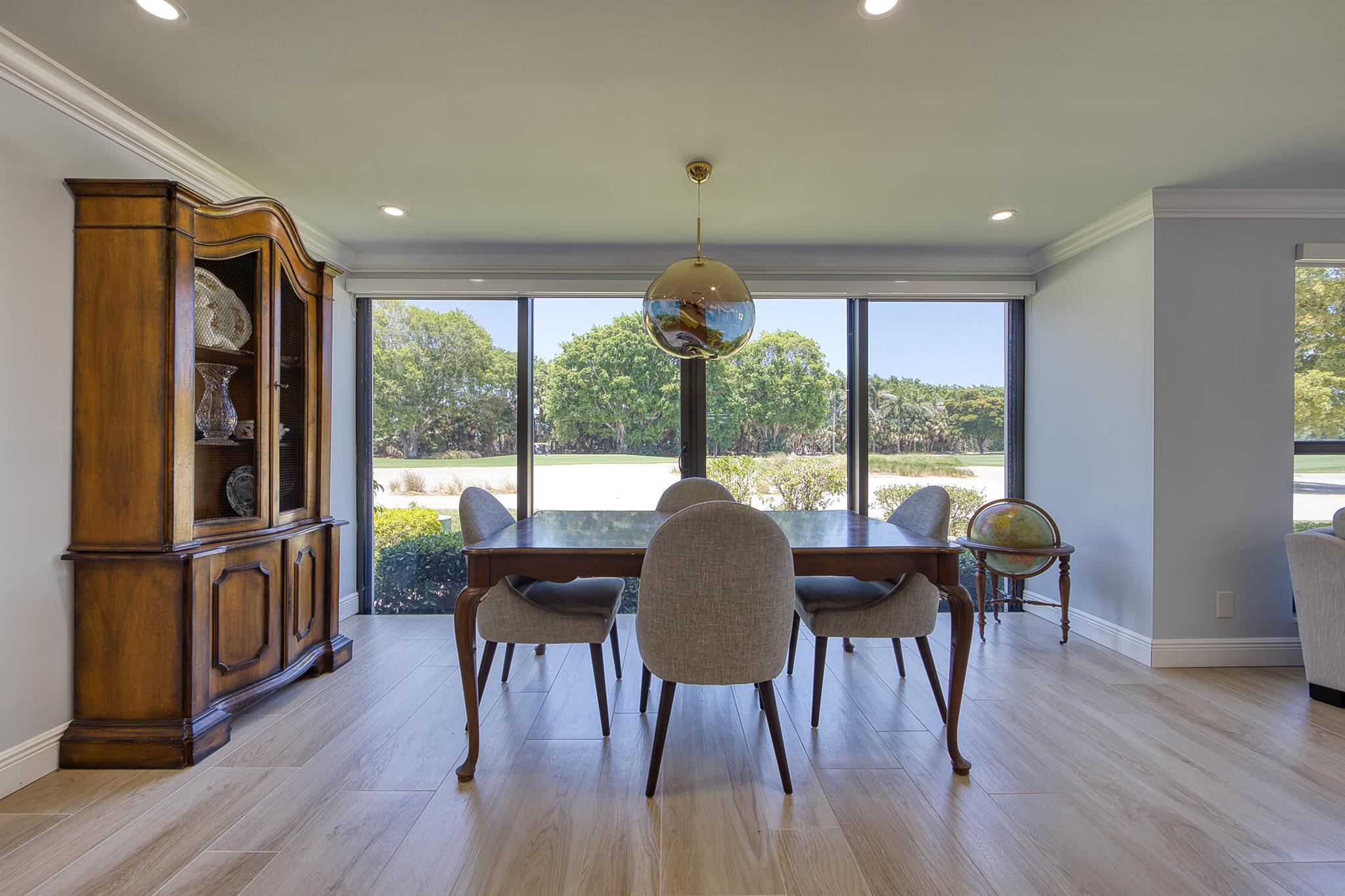Discover this beautifully remodeled first-floor corner condo located in the Green Heron N area of Quail Ridge. Enjoy sweeping golf course views that span the entire length of this 2-bedroom, 2-bath residence. Impact glass windows. The open-concept kitchen features a spacious island with ample counter space and storage, custom cabinetry with pull-out drawers, and a wine fridge -- perfect for both cooking and entertaining. Quail Ridge is a mandatory membership private club community offering world-class amenities, including top-tier golf, racquet sports, an expansive clubhouse, spa, and fitness center. Dining Chandelier excluded.
