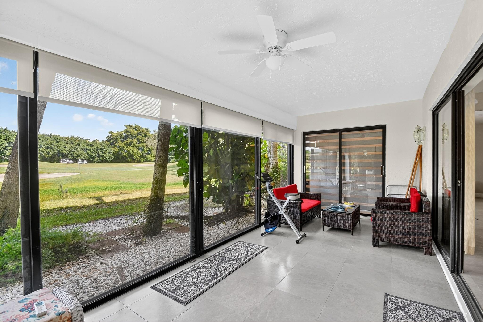 Welcome to a stunning ground floor large 3 bedroom, 2 full bathroom corner condo overlooking the lake and golf course. Abundance of light and open spaces layout with spacious living and dining areas, newly designed eat-in kitchen, large primary suite, and screened big Florida room with sliding doors. Fully redone, with modern accents and high-end finishes, no popcorn ceilings throughout, new designed blinds with remote control,custom made walking closet. Same ceramic tiles throughout. New appliances, water heater, and Air Conditioner with 10 years transferable warranty. You have an option to join membership at the Indian Spring Country Club offering resort style amenities. Separate large storage room near the entrance. Walking distance to places of worship and short drive to the beach.
