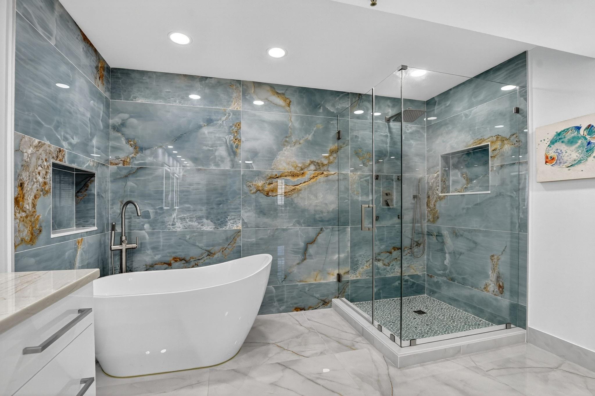 Amazing Condo with spectacular Views, Vistas, and Sunsets. Spacious Primary bedroom-bathroom suite. Large walk-in. Third bedroom currently a den / office, can easily be converted to 3rd bedroom. Three FULL bathrooms. Recently, completely updated, new AC, water-heater, Bosch cook-top, stacked clothes washer and dryer combo, Kitchen-aid wall oven with microwave, and new Bosch dishwasher. Both patios glassed / screened in bringing the floor-plan under AC to 2150sqft. Use of updated private pool cabana, private pool, hot-tub, exercise room, and card room. Upfront parking and storage area. Optional Membership at the Boca Pointe club.