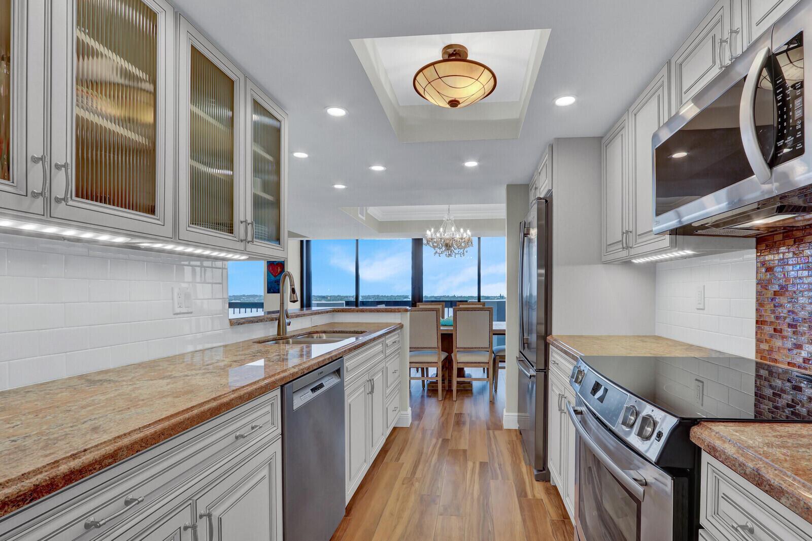 Move right in everything has been done for you! This beautifully renovated 2-bedroom, 2-bathroom luxury condominium on the 12th floor offers an elevated coastal lifestyle with wrap-around deck & breathtaking views from every room, overlooking the Intracoastal Waterway, Singer Island, and the Atlantic Ocean. Enjoy both spectacular sunrises and sunsets. The condo features new HURRICANE IMPACT floor-to-ceiling windows and sliding glass doors, bringing in abundant natural light and showcasing the incredible views. Completely RENOVATED with high-end finishes, porcelain wood-look plank tile flooring, LED high-hat lighting, new doors throughout, freshly painted. New waterproof decking 2025.
