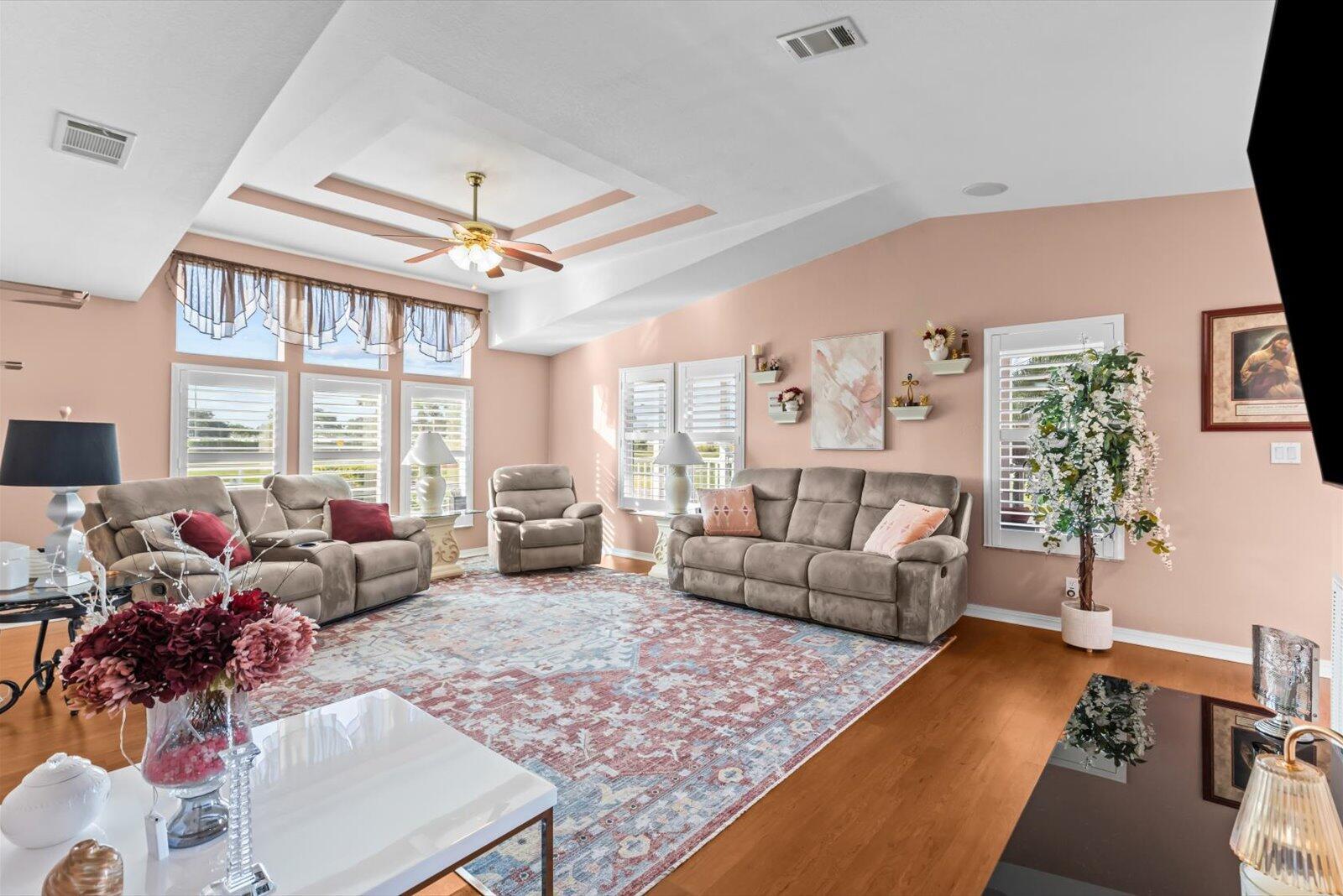 Beautiful 3-bedroom, 2 bath home on the golf course. New A/C 2021.New roof, well pump, microwave, and new vapor barrier in 2023. New water heater2024. Interior painted 2023. Large, country-style front porch, 2-car garage, and laundry room. Plantation shutters in the living room, with french doors leading to the 3rd br/den. The spacious primary suite boasts a walk-in closet and suite bath with step in shower. Laminate flooring thoughout. Dining room sliders leads to a roomy screened lanai and two additional patios, adding flexible outdoor living space. Sale may include 2018 EZ-Go golf cart (new batteries 2023)- negotiable. This home may also be furnished or unfurnished. located in the desirable Savanna Club 55+ community, where you'll enjoy resort-style living additional amenities.