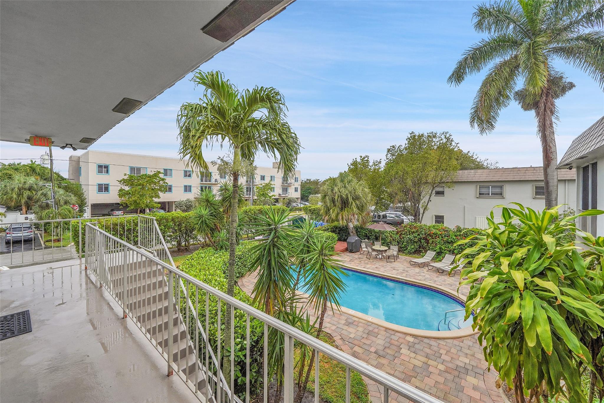 This is Your POOLSIDE Paradise at Oakland East Manors in Oakland Park, FL. 2 Bedroom, 1 Bathroom Condo on 2nd Floor, Completely Renovated, featuring an Expanded Kitchen w/Rare Granite Countertops, Custom Cabinets w/Hidden Drawers, 2021 Stainless Steel Appliances, LED lighting & NEST AC control. FURNITURE NEGOTIABLE! Upgraded Electrical, 2019 AC & 2021 Water Heater ensure modern convenience. NEW ROOF & FENCE 2026 (pre-paid). The spa like bathroom boasts Ceramic Tile, a Glass-Enclosed Shower with Slotted Drain. Impact Windows offer Panoramic Views facing East, South & West, showcasing AMAZING POOL, SUNRISE & SUNSET VIEWS. Enjoy vibrant nearby shopping, dining, coffee, groceries, movies, airport, Wilton Manors, Las Olas, Fort Lauderdale & More! This is the Lifestyle You Deserve! WELCOME HOME!