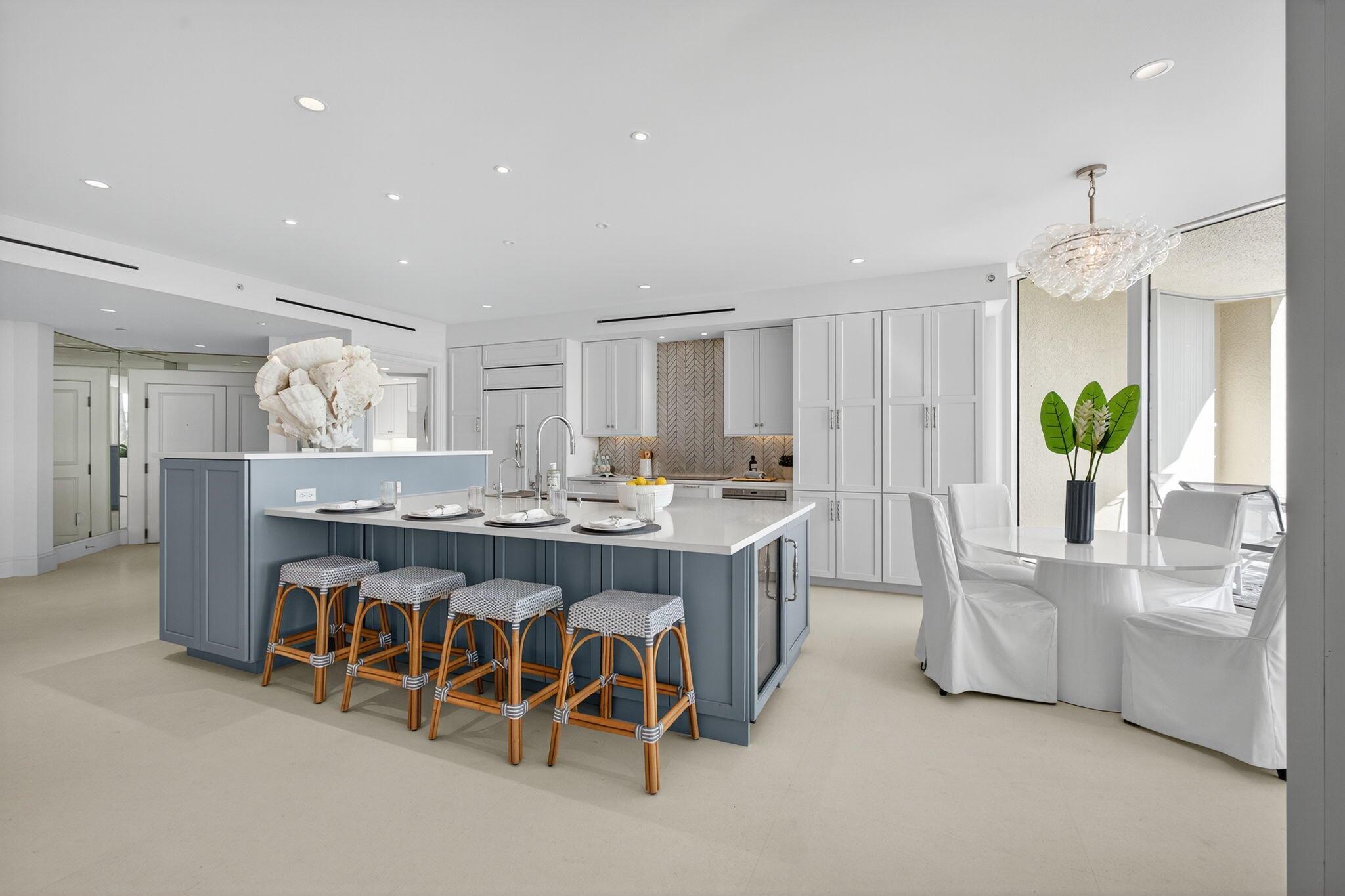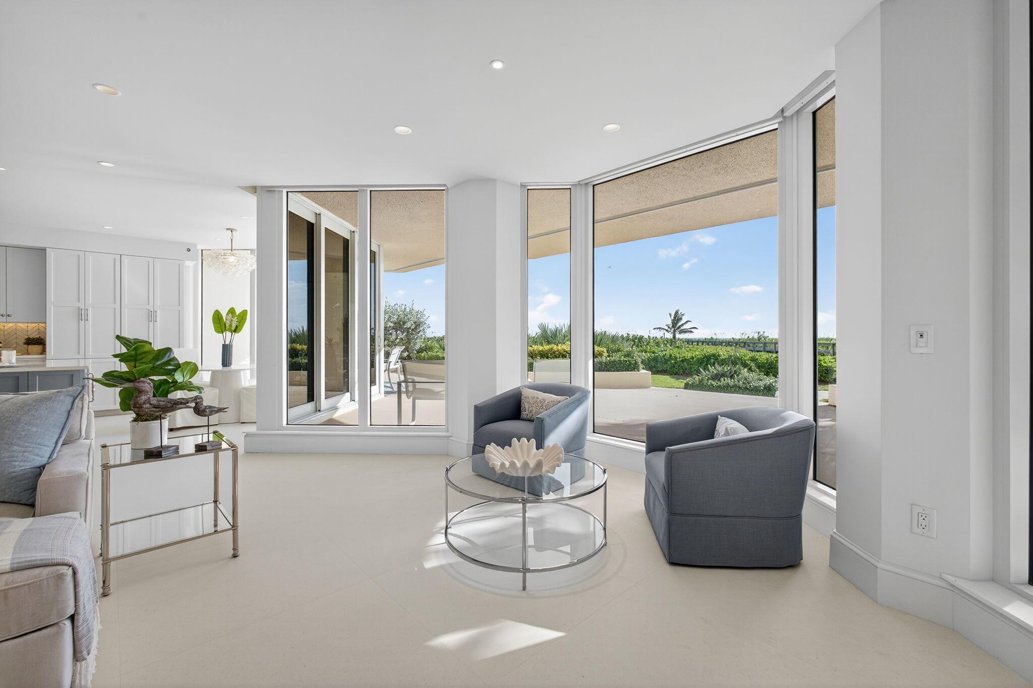 This spacious three-bedroom, three-bathroom first-floor Ocean Isles condo offers luxury coastal living with direct beach access--perfect for pet lovers and ocean enthusiasts. Features include limestone floors, crisp white baths with custom tilework, Lutron shades, impact glass, accordion shutters across outdoor spaces, two under-building parking spaces, and air-conditioned storage. The open kitchen showcases Wolf and Sub-Zero appliances, quartz counters, and a large island. Enjoy tropical breezes from the expansive oceanfront terrace or sunsets from the west-facing balcony. Ocean Isles offers privacy with just two condos per floor and elevator access. Within the exclusive Sailfish Point community at the southern tip of Hutchinson Island, residents enjoy oceanfront Nicklaus Signature golf,
