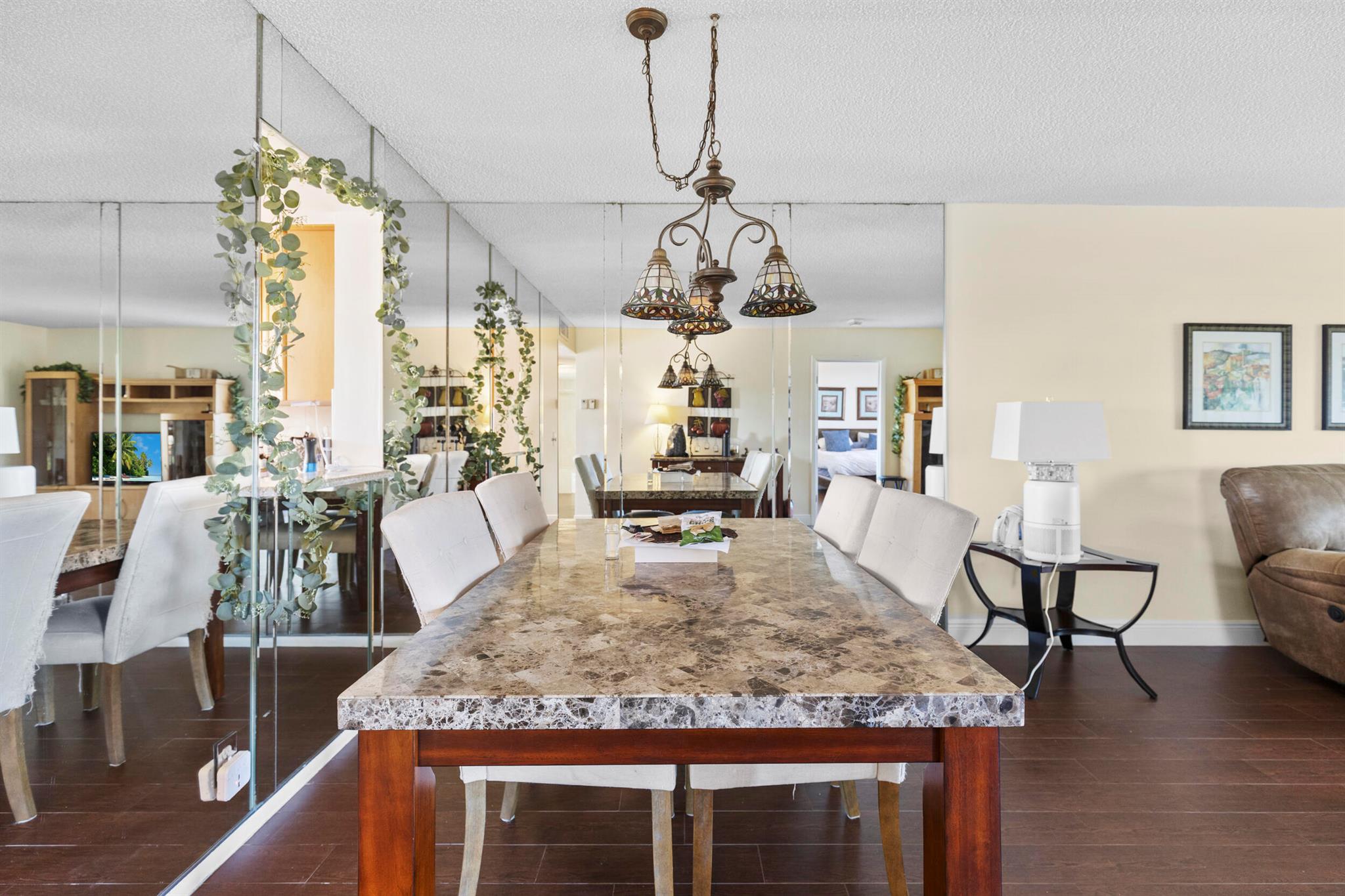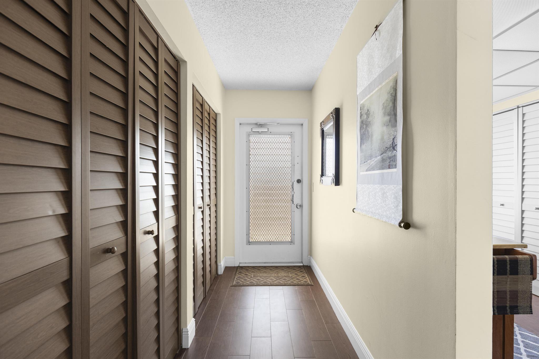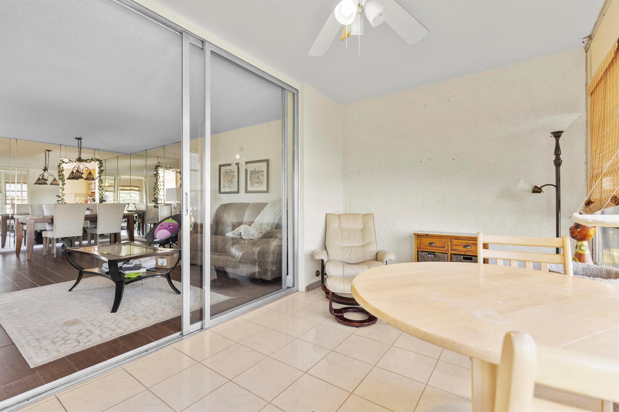 FULLY FURNISHED move-in ready!! Beautiful LAKE VIEW from 4th Floor! Open living concept. Updated kitchen with granite, wood shaker cabinets, stainless-steel appliances and large pantry. Florida dining area, Primary suite has large walk-in closet, tiled shower. Second bath has tub/shower combo. Glassed in porch makes room for den, office or extra bedroom! Washer & Dryer conveniently located inside unit. Storage closet too. Water heater 2017. Fabulous amenities including clubhouse, library, auditorium, heated pools, fitness center, walking trails, tennis/pickleball courts, bocce, hot tub and courtesy bus serviceClose to turnpike, shopping & the beaches. This community is 55 or better.