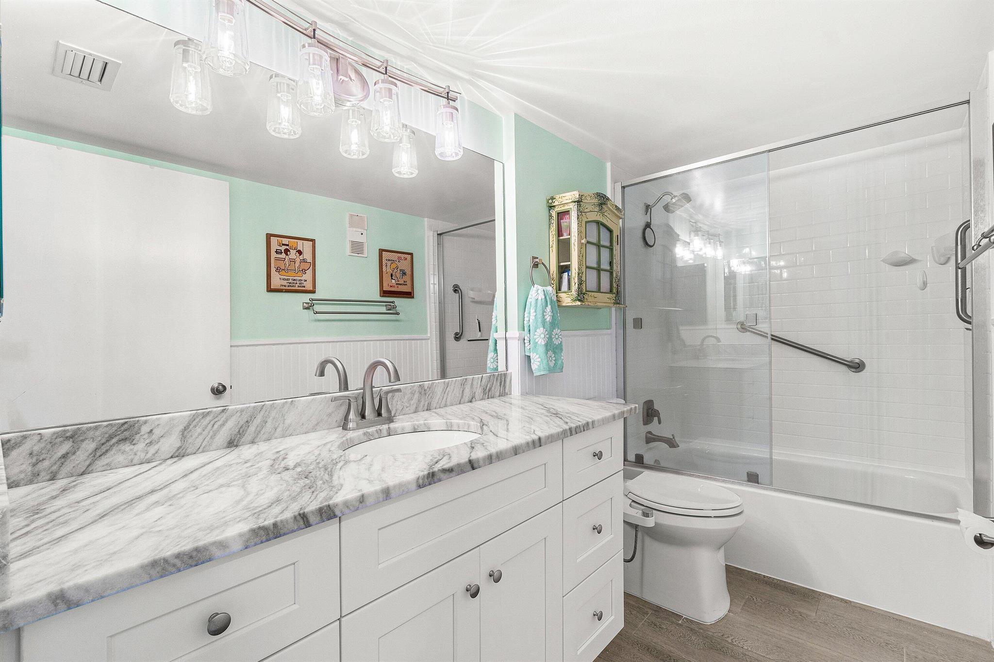 LAKE VIEW_1ST FLOOR Meticulously RENOVATED Chardonnay Model, 2 BD / 2 BTH / DEN + FLORIDA RM. WOOD GRAIN TILED FLOORING THRU-OUT,SMOOTH CEILINGS. SS APPLIANCES WOOD KIT CABINETS,GRANITE COUNTERS, TILED BACKSPLASH. RENOVATED BATHRMS. MST BTH DUAL SINK VANITY, NEW HIGH ARC FAUCETS, WALK-IN SHOWER. ALL NEW CEILING FANS + LIGHTING FIXTURES. FULL SZ WASHER & DRYER, ASSIGNED PARKING SPACE DIRECTLY IN FRONT __FEELS LIKE YOUR ENTERING A VILLA! ASSIGNED STORAGE LOCKER. ENJOY RESORT STYLE AMENITIES **NEWLY RENOVATED CLUBHOUSE w/ PERFORMING ARTS THEATER, INDR & OUTDR POOLS, CAFE, LIBRARY, FITNESS w/Locker Rooms. TENNIS, PICKELBALL, BILLIARDS, CARDS,CLUBS,WATER AEROBICS and More! HUNTINGTON POINTE IS AN ACTIVE 55+ GATED COMMUNITY. CLOSE to OCEAN, BEACH, SHOPPING & DINING!