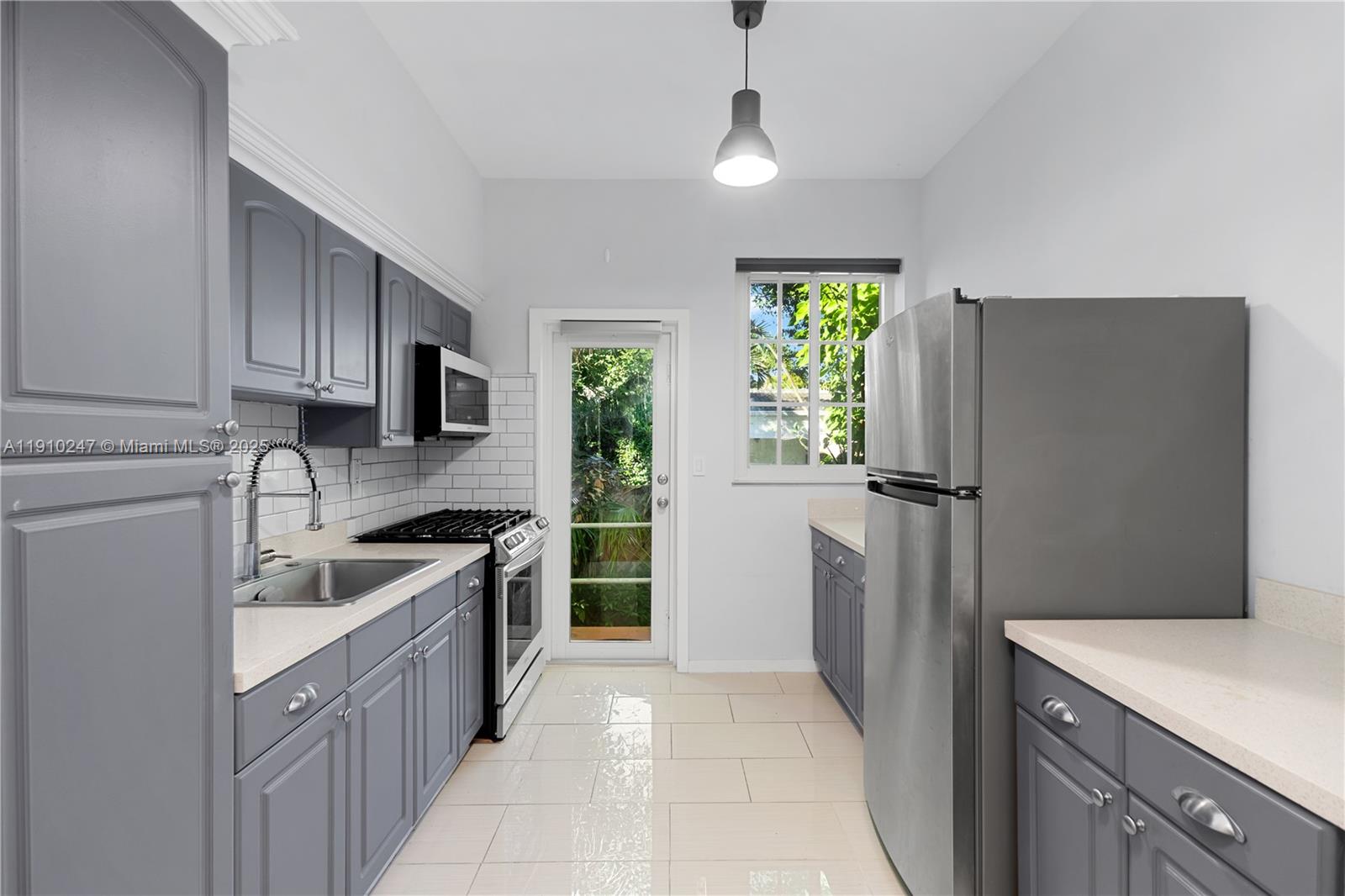 Tropical oasis in the heart of South Beach: step through the gate into this tranquil private complex of only 5 residences w/lush landscaping & enchanting outdoor spaces before entering your own piece of paradise that feels like a private home: high ceilings, large scale impact windows, completely remodeled w/wood floors, open kitchen w/granite countertops & stainless steel appliances including gas range, modern bath w/marble floors, large bedroom w/room for office area, & great closet space including large walk-ins. Spacious layout w/windows in every room, formal dining room & oversized living spaces- has the charm of Art Deco but with an open sunny feel & modern finishes-unique to the area and a property you must see in person. Walking distance to great restaurants, shops, parks & ocean.