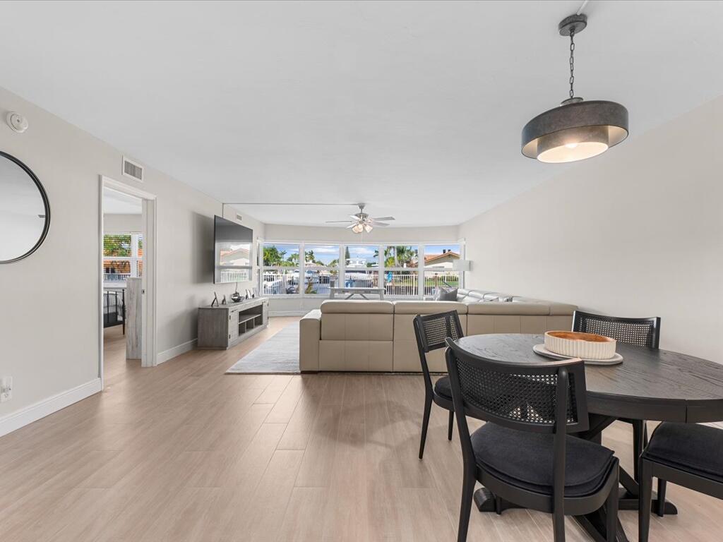 Discover the finest in coastal living in Fort Lauderdale. This fully remodeled, ground-floor residence showcases a desirable split floor plan with 2 bedrooms and 2 bathrooms, positioned directly on the canal to offer serene, picturesque water views--perfect for both beach lovers and boating enthusiasts.The modern kitchen is appointed with white shaker cabinetry, stainless steel LG appliances, and elegant marble countertops. An open-concept layout invites natural light and water views into the kitchen, dining, and living areas, as well as the primary bedroom. Additional enhancements include an in-unit ventless LG washer/dryer combo, a new water heater, and a new Bosch HVAC system.