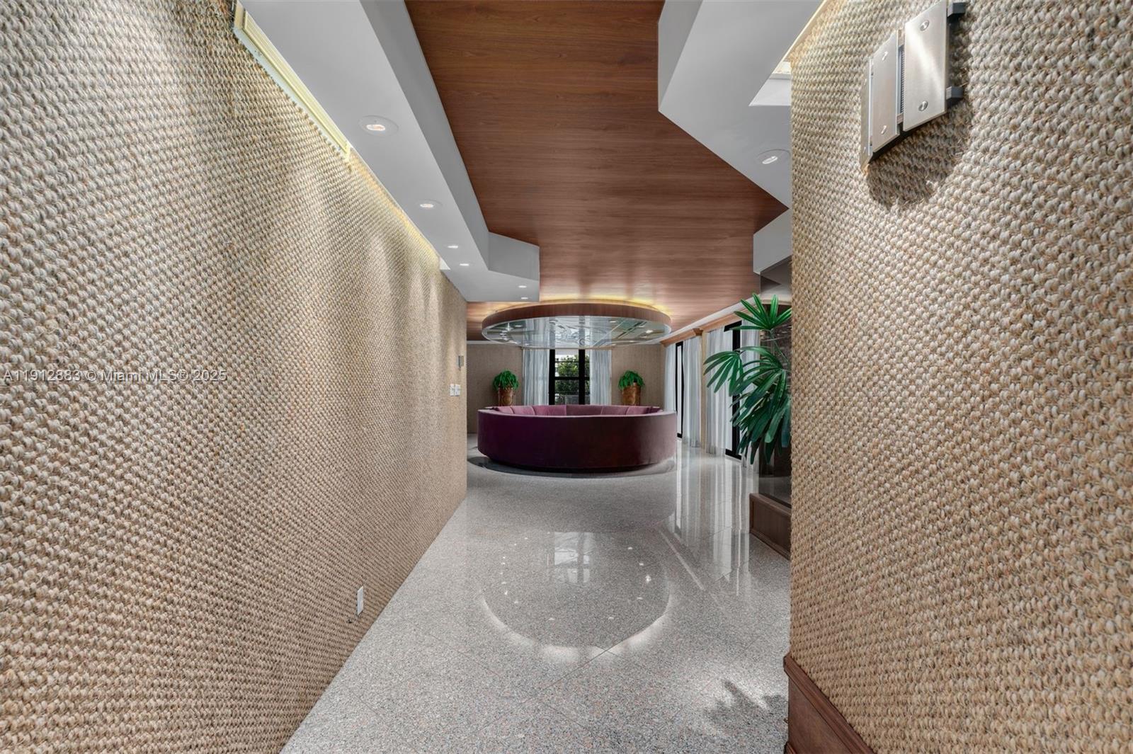 Corner unit in immaculate condition showcasing beautiful millwork, rich wood, and a Retro Miami Glam style, with stunning Intracoastal views overlooking the pool. The spacious living area opens to the wraparound balcony and flows into the dining room and kitchen, all capturing water views. Just off the kitchen is an in-unit washer and dryer, and a generous library/den with a wet bar adds great flexibility. The primary suite offers two walk-in closets and dual bathrooms, while the second bedroom features its own ensuite bath, along with a separate powder room for guests. Additional private storage is located outside the front door. The building features outstanding amenities, including a waterfront pool, tennis courts, a club room, gym, sauna, and an on-site restaurant.
