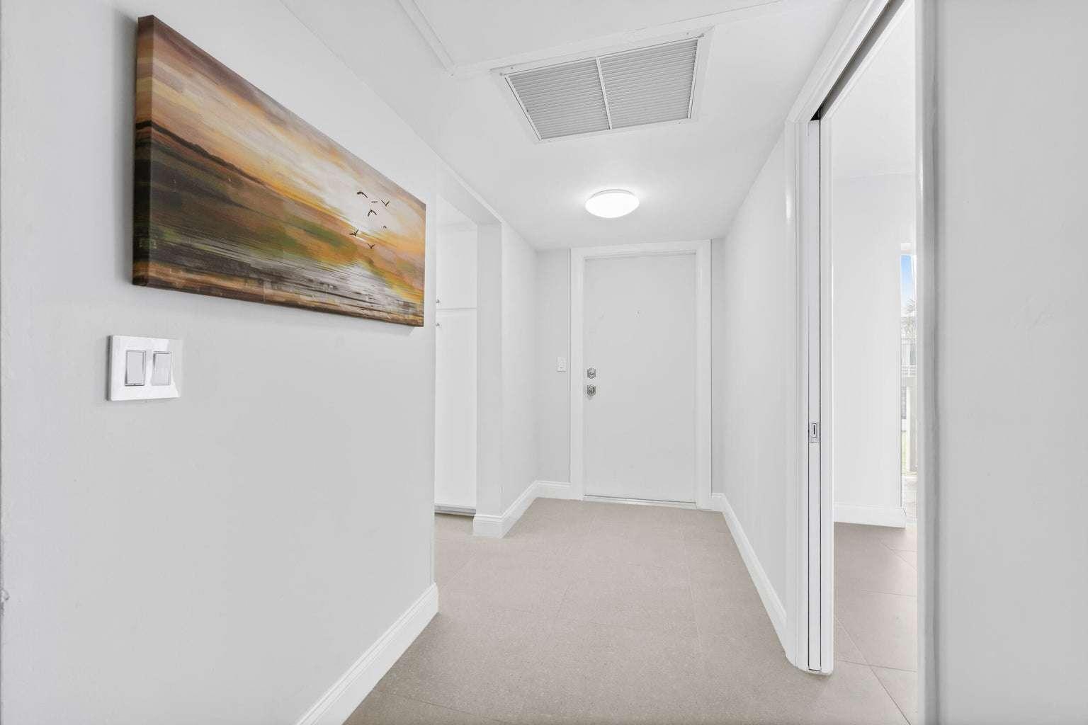 Discover this immaculate, move-in-ready 2-Bedroom, 2-Bath Condo in the heart of North Palm Beach, offering a split floor plan, modern updates, and two community pools with grilling areas to enjoy. Perfectly located near beaches, golf courses, parks, and more, this home delivers the ultimate Florida lifestyle. Primary bedroom offers private en suite bathroom; second bedroom has a walk-in closet and en suite shower/bath combo. Neutral and updated tile flooring throughout, crown molding, and a screened patio with peaceful views. Updated electrical panel, hot water heater, refrigerator, Nest thermostat, and other updates. This 2 story building has no pending assessments; it was freshly painted and newly refinished parking lot. The unit has one designated parking space plus ample guest