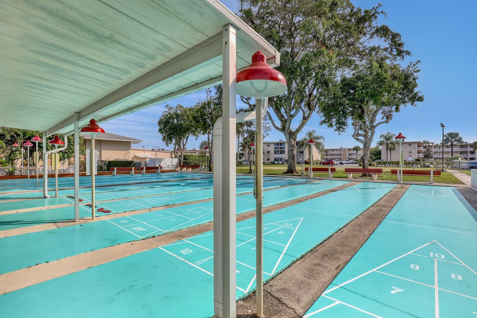 Fully renovated 2-bedroom, 2-bathroom condo in a desirable 55+ community featuring elegant tile flooring throughout and a modern kitchen with shaker-style cabinets and stainless steel appliances. Enjoy peace of mind with full hurricane protection and unwind on your oversized balcony with the serene lake views. The vibrant community offers an abundance of amenities, including two pools, sauna, billiards, library, bocce ball, shuffle board, card room, exercise room, picnic and even a wood shop--perfect for staying active and social. Ideally located just a few miles from the beach and surrounded by shopping, dining, entertainment, and conveniences like Costco and major highways.