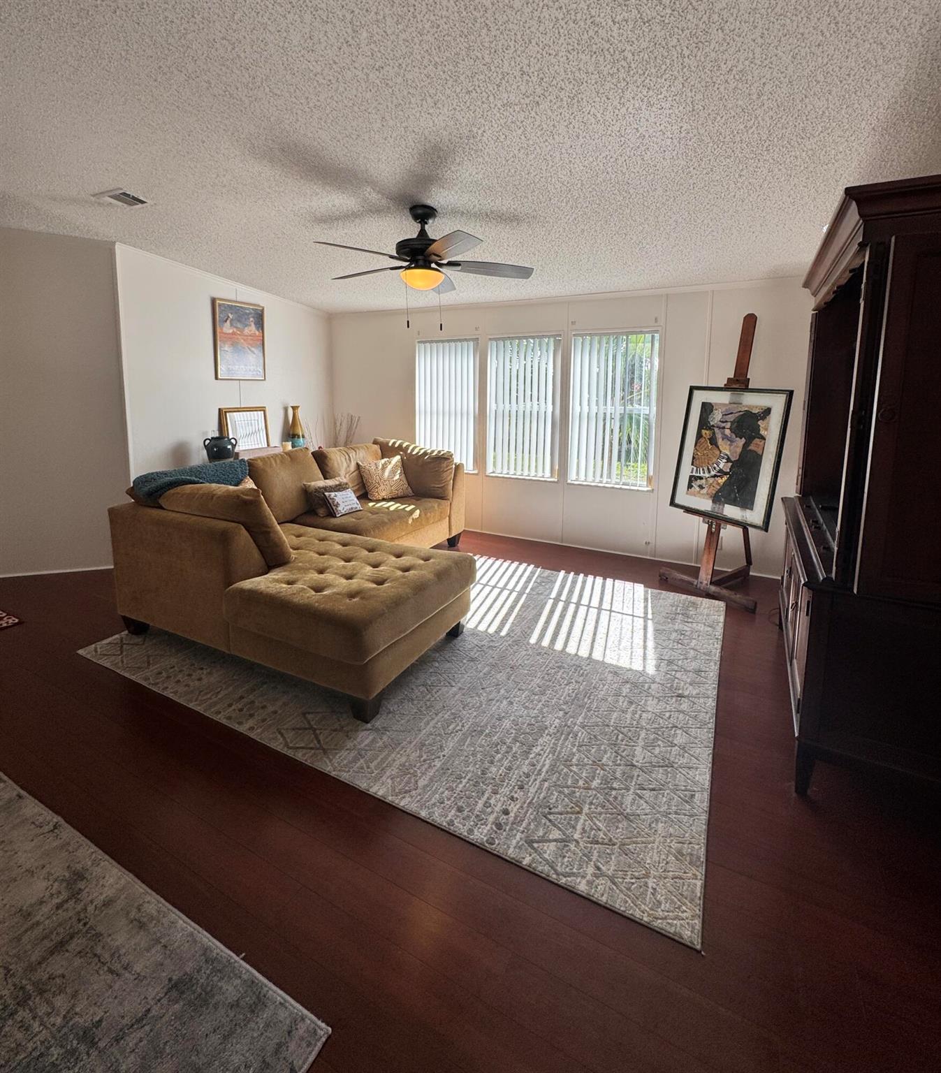 Well maintained 3 bedroom 2 bathroom home in the desirable 55+ Spanish Lakes Fairways community. This home sits on a very quiet cal da sac and backs up to the golf course. The home has a lovely Lanai is great for enjoying morning coffee or evening cocktails. Added patio area off the lanai for grilling or just enjoying the Florida sun. This home boast 3 bedrooms, living room and family room. laundry room is inside. Plenty of space for out of town guest. Laminate and carpet flooring. Spanish Lakes has 2 pools, a private 18 hole golf course, sauna, fitness room, library, billiards, craft room, bocce, pickleball, shuffle board, darts and more. Lawn cutting, trash removal are also included in lot rent.