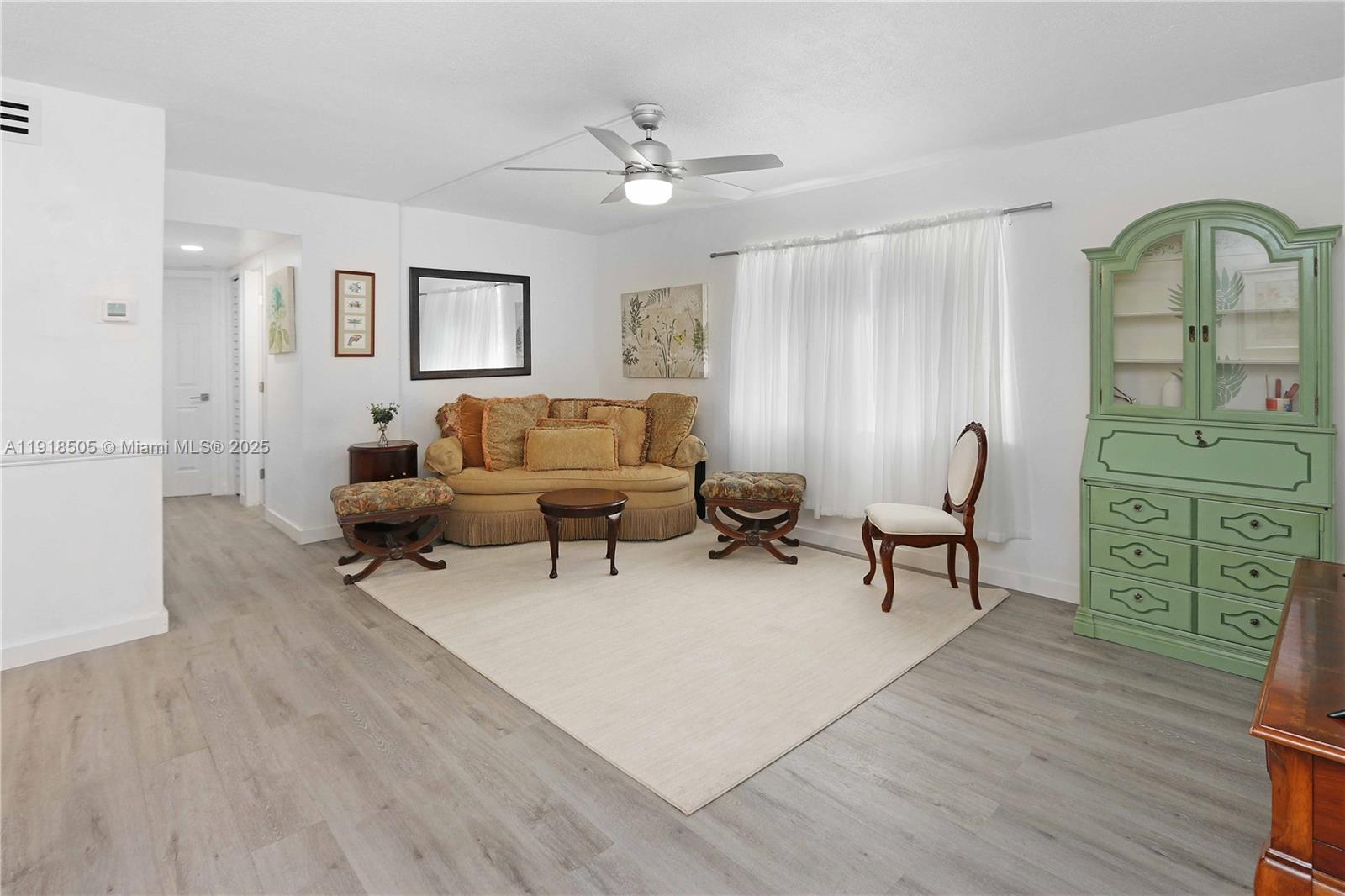 This rare ground-floor corner unit offers exceptional privacy, beautiful natural light, and a bright, open feel throughout. Featuring new laminate flooring, impact windows, and windows in every room, the home feels airy and inviting from the moment you step inside. The large screened-in patio is perfect for relaxing or entertaining, surrounded by lush landscaping that enhances the sense of tranquility. The unit is handicap accessible, includes extra storage, and features thoughtful upgrades like a 2024 A/C, 2021 water heater, and an updated bathroom with porcelain tile, a walk-in glass shower, and modern finishes. The community offers a private Intracoastal-front park, BBQ area, courtyard access, and is surrounded by million-dollar homes—all with low HOA fees and a newer roof. Ideally located near Gulfstream, Aventura, dining, shopping, and the beach.