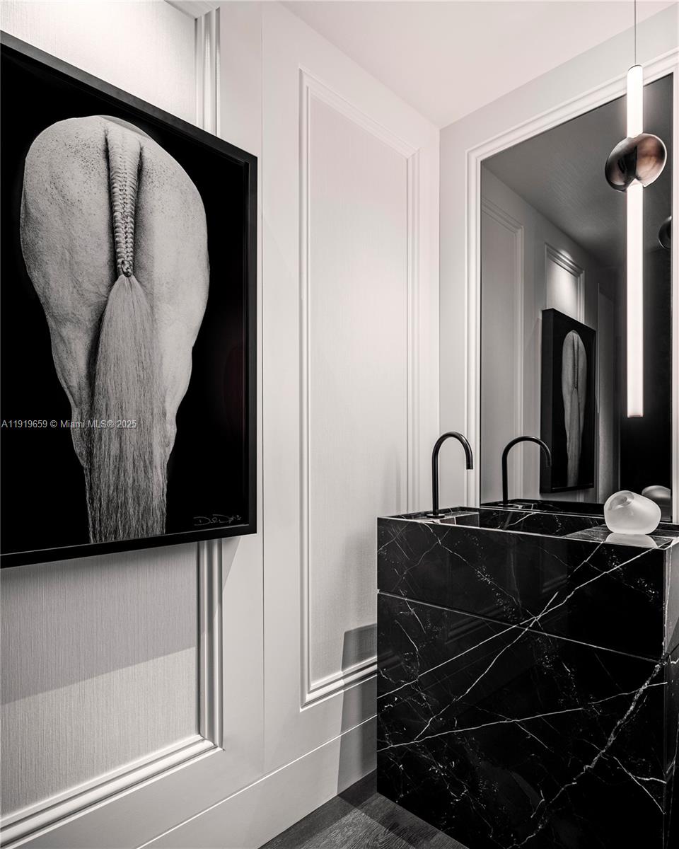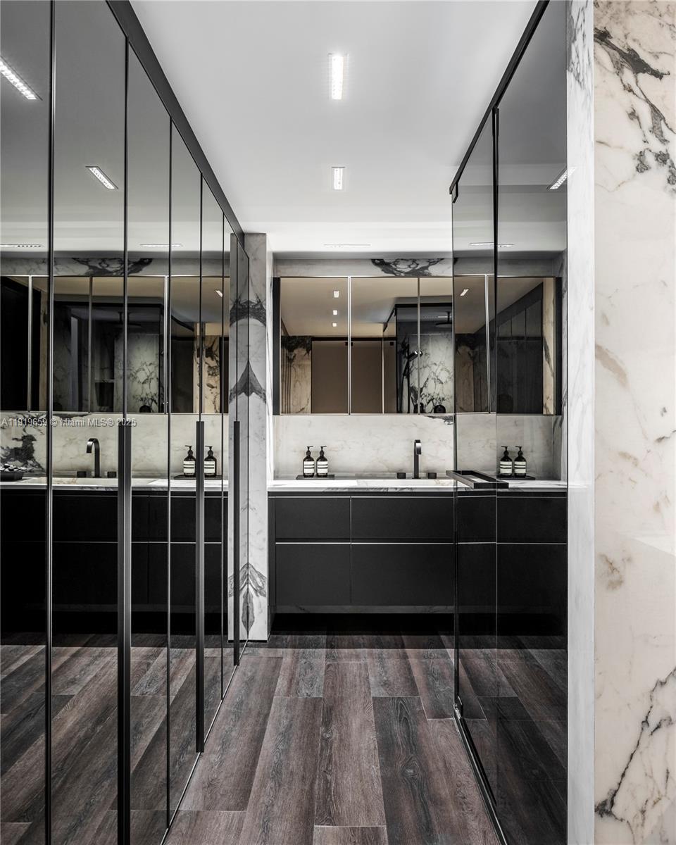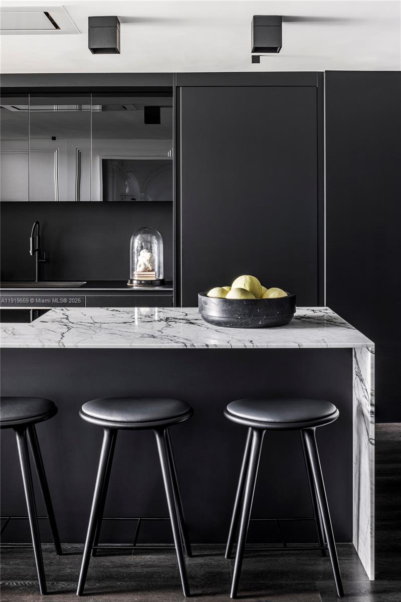 A fusion of architecture and high design, this sophisticated loft-style residence sits 22 stories high in the iconic Ten Museum Park tower by visionary architect Chad Oppenheim. Designed by award-winning B&G Design (Giselle Loehr Sugarman and Brett Sugarman), the 1,802 SF home showcases dramatic 20-ft floor-to-ceiling impact glass that floods the 2-bedroom, 2.5-bath layout with natural light and breathtaking views. The minimalist interiors feature streamlined cabinetry, a striking smoked-glass and steel staircase, and sculptural vertical millwork—high-impact elements rarely seen at this level. Panoramic east-facing views stretch over Museum Park, Biscayne Bay, and the Miami and South Beach skyline. The sleek kitchen features custom cabinetry plus an oversized stone island as a striking focal point. Elegantly grained flooring, imported marble surfaces, and built-in cabinetry elevate the residence. Additional features include motorized solar shades, a full-size Miele washer/dryer, two assigned parking spaces, and air-conditioned storage. Exclusive Five-Star Wellness Amenities at Ten Museum Park sets the global standard for resort living, offering residents an unparalleled wellness experience powered by the world-renowned Clinique La Prairie Spa of Montreux, Switzerland.