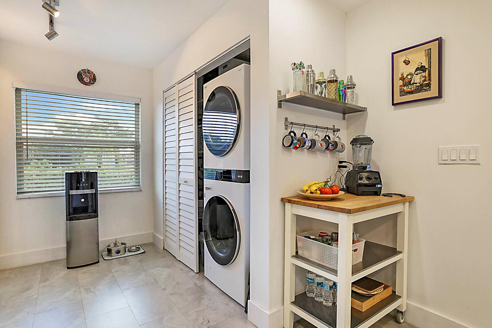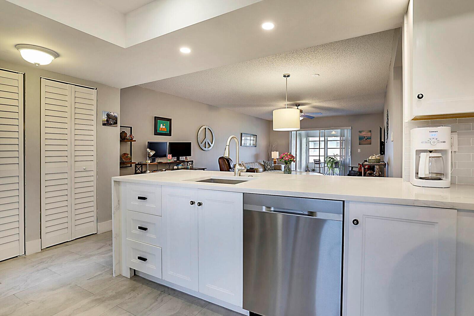 Beautifully updated with peace of mind built in -- this 55+ home features all impact glass windows plus roll-down shutters on the back patio. Inside, enjoy quartz countertops, shaker cabinetry, stainless steel appliances, a new stackable front-load washer and dryer, wood laminate flooring, updated bathrooms, and a new AC. Relax with a peaceful garden view in a well-maintained community with no special assessments.