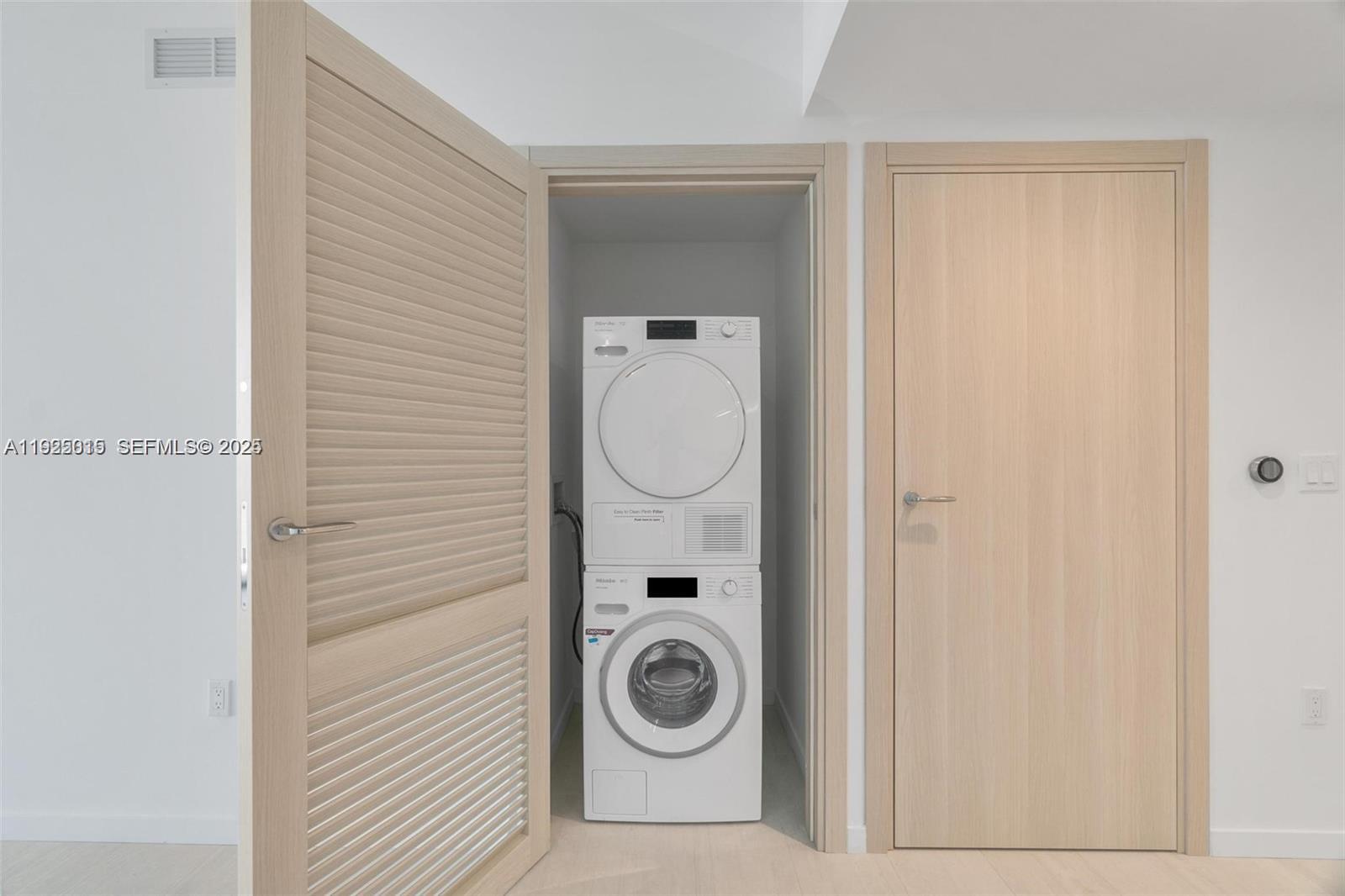 Available immediately. Elegant 1-bedroom, 1.5-bath residence at the iconic Brickell Flatiron. This beautifully finished 33rd-floor unit offers an open layout with abundant natural light, sleek wood-style flooring, and a gourmet kitchen equipped with top-of-the-line Miele appliances. The master bedroom features stunning skyline views. Unit includes a private storage space. Brickell Flatiron offers one of the most impressive amenity collections in Miami, including a spectacular rooftop spa and fitness center on the 64th floor with 360-degree, unobstructed views of the bay and city. Additional amenities include an 18th-floor lap pool, children’s playroom and pool, private movie theater, wine room and cellar, full-time concierge and doorman, and a stylish resident lounge. Move-in ready and easy to show.