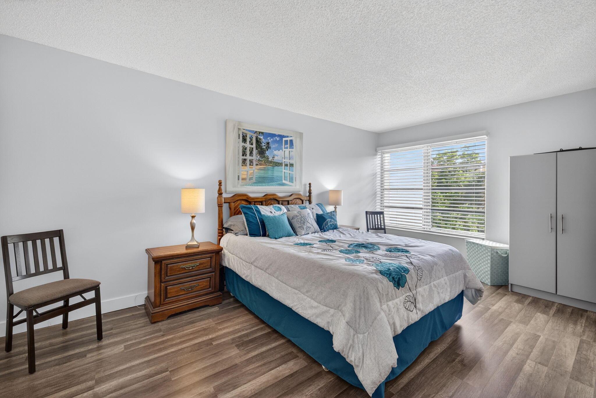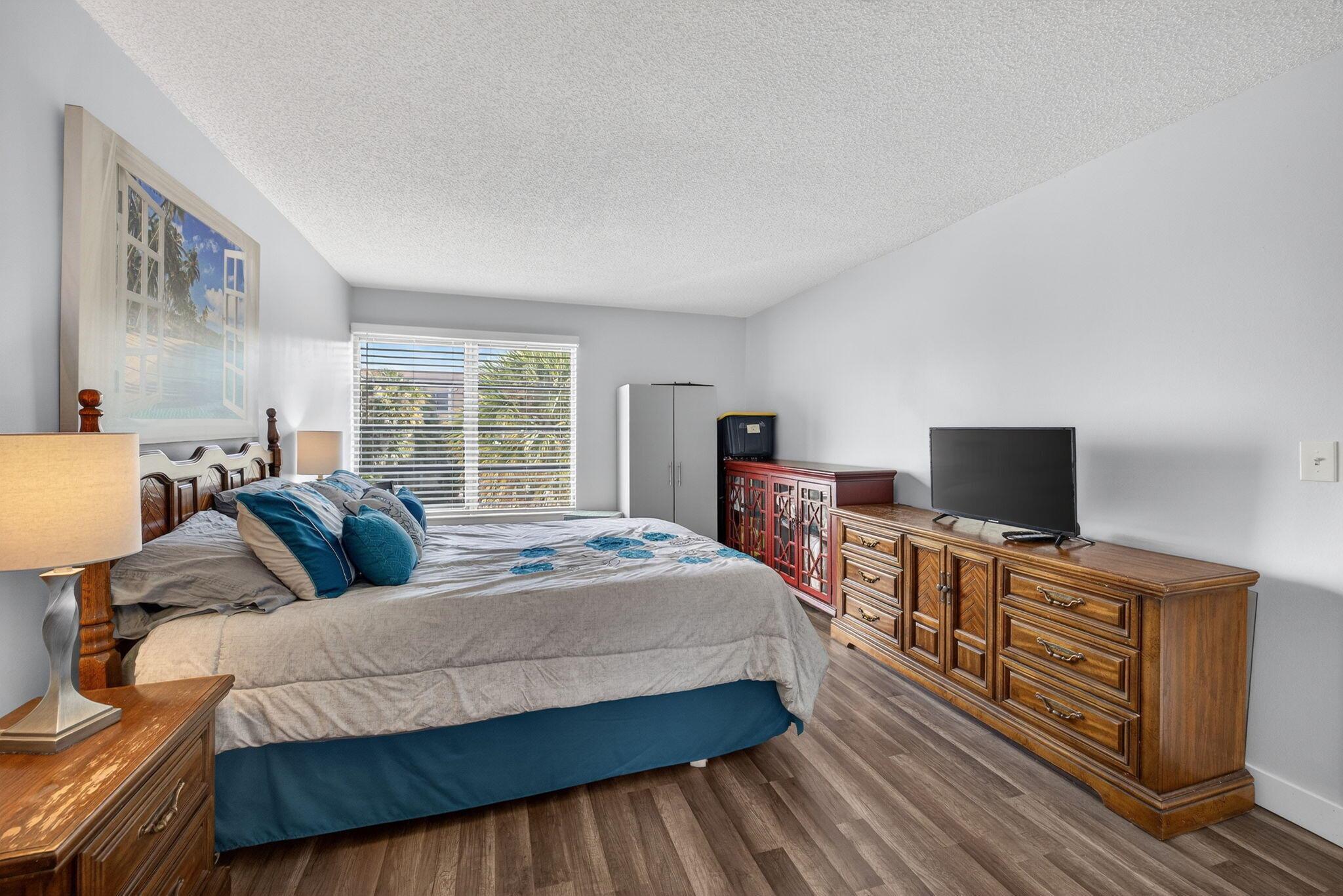 Beautiful, spacious 1 bedroom 1 1/2 bathroom condominium. Newer stainless steel refrigerator, dishwasher, and microwave in kitchen. New flooring, new blinds, both bathrooms fully updated! Tile in main living areas and laminate flooring in the bedroom. HVAC 2023, HWH 2023. Roof redone in 2024. No assessments! New screens on lanai! Furniture is negotiable. This unit has been owned since 2019 with seasonal owners. Immaculate and well cared for! A must see!