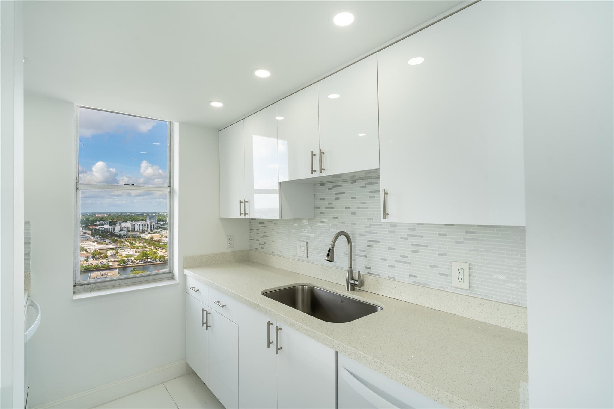 Walk in to spectacular panoramic ocean and Intracoastal views from this gorgeous SW corner 2 bedroom 2 bath condo. Totally updated kitchen and baths, with an open concept kitchen. Tiled throughout, newer A/C and water heater, garage parking, cable and internet included with monthly maintenance. Beachfront recreation center with all of the amenities including 2 pools, 2 gyms, picnic tables and bbq grills on the beach, bar and so much more. Fabulous location along the new "Millionaire's Mile", walk to shopping, 4 star oceanfront dining, fishing pier and all that the newly revitalized Pompano Beach has to offer.