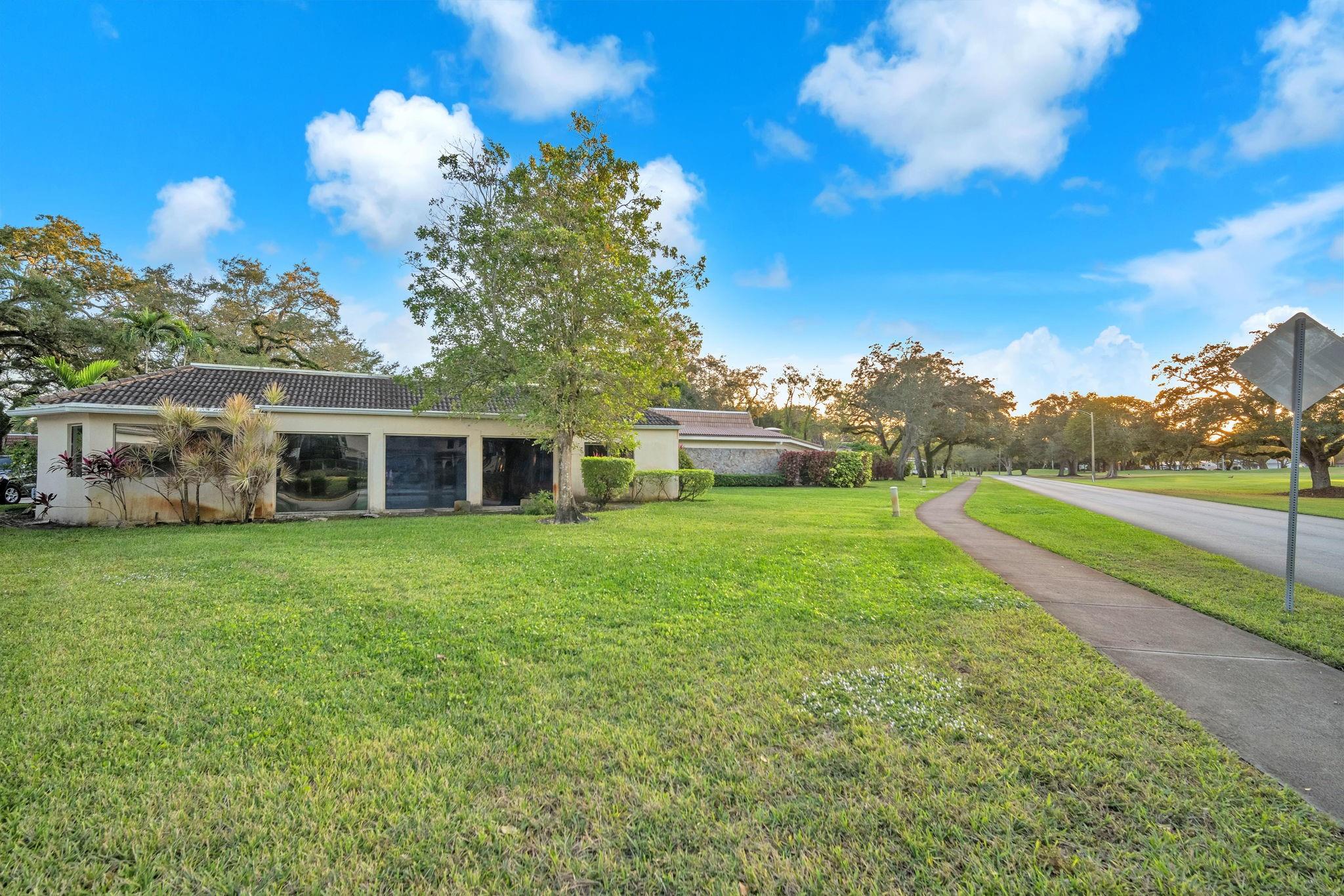 Welcome to Emerald Green Villas Section 2! This bright and spacious ground-level residence offers an open-concept layout with a desirable split 2-bedroom floor plan, 2.5 baths, and a closed-in patio with the ability to make a 3rd room. Enjoy golf course views and easy access with two private entrances. 2nd entrance into the laundry/utility room to help manage deliveries/groceries. The eat-in kitchen and separate laundry room add everyday functionality. Centrally located in the heart of Emerald Hills, this home is walking distance to houses of worship and a new playground and splash pad coming soon, and just minutes from TY Park. Community amenities include a heated pool. Ideally located only 10 minutes to the airport, 15 minutes to the beach, and 5 minutes to the Hard Rock Casino.