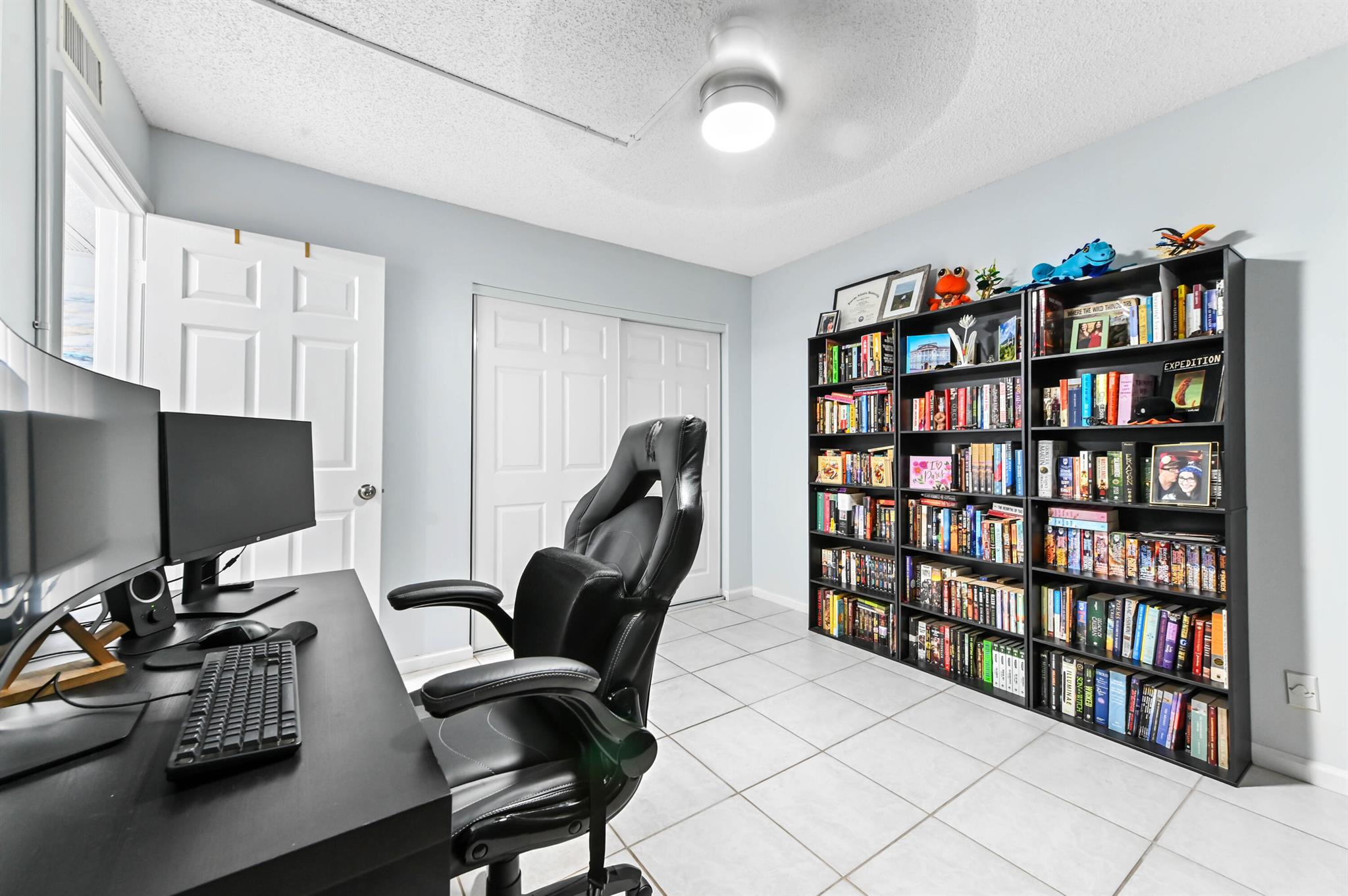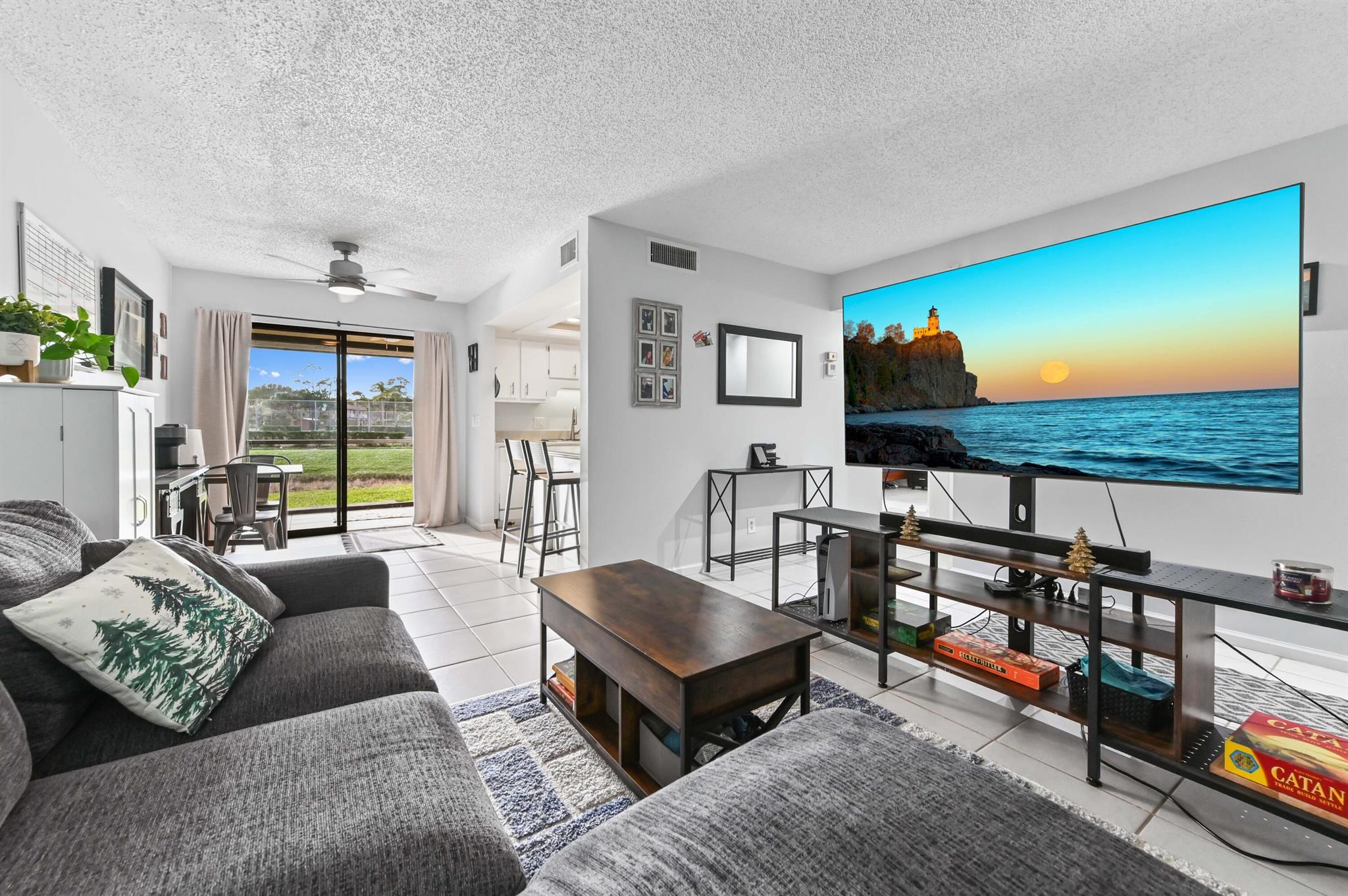 Discover the perfect blend of comfort and convenience in this immaculate, move-in-ready, first-floor condo, offering easy access without a single stair to climb. Step inside to find a bright and airy stack-bedroom layout that features pristine ceramic tile flooring throughout, ensuring a cool and low-maintenance lifestyle year-round. The heart of the home is the charming kitchen, distinguished by a unique tray ceiling that adds a touch of architectural elegance to your culinary space. Peace of mind is paramount here, with complete accordion shutters on all windows and doors for effortless storm protection.