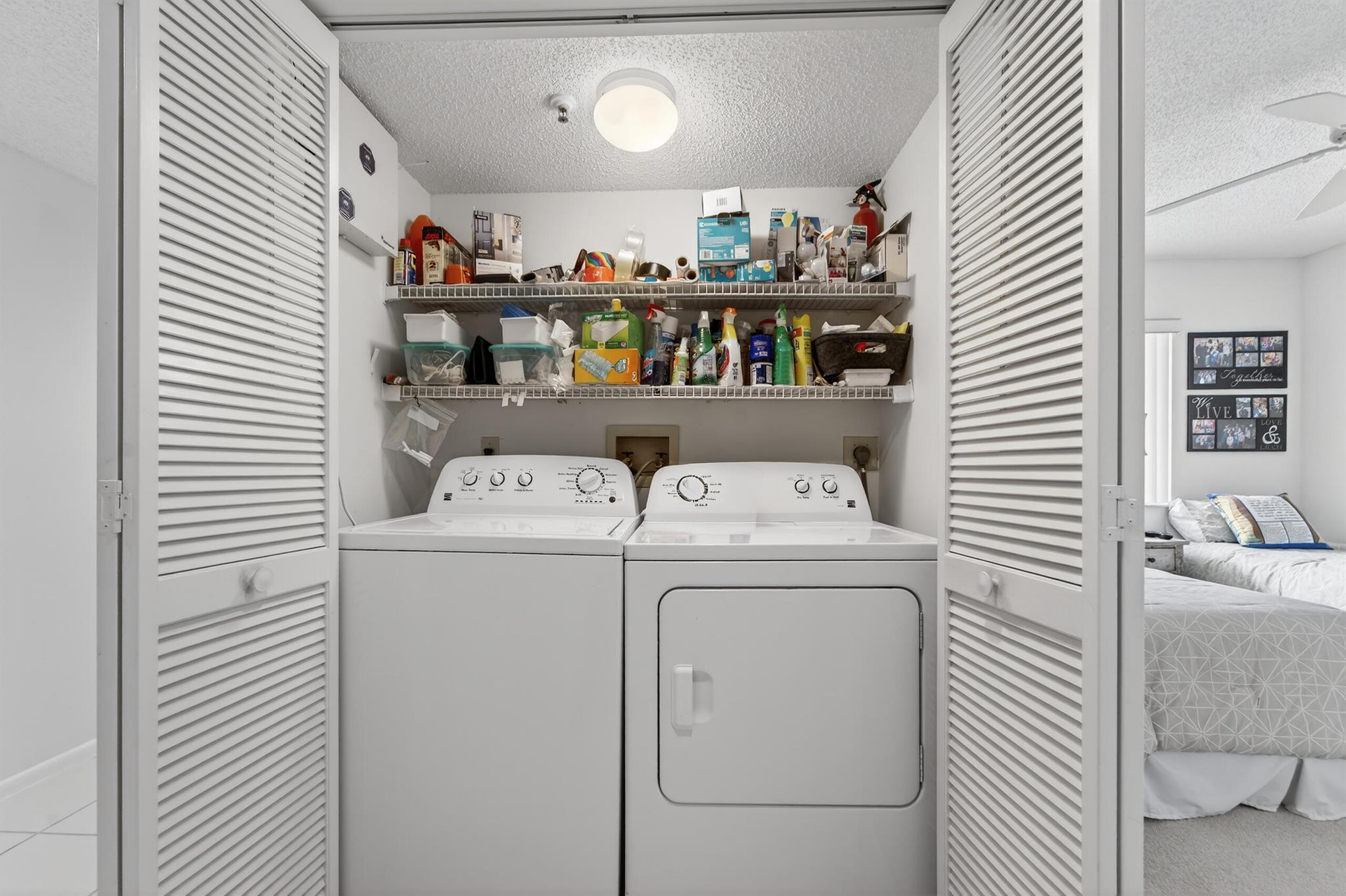 Spacious and spotless 2/2 condo with convertible den with unique pocket doors so it easily doubles as an office or guest room. Panoramic lake view from screened, enclosed Florida room. Upgraded kitchen with granite counters and wood cabinets. Newer appliances. Oversized walk-in closet in primary br, along with en-suite bath with walk-in shower. Unit is fully carpeted for a soft feel underfoot. Inside laundry fits a full sized washer and dryer. Covered parking space #46. Seller has paid roof and clubhouse assessments in full. Move right in or make it your own. Huntington Pointe is an active adult community that features a 53,000 square foot clubhouse. The 600 seat theater offers live entertainment and movies year 'round. Plus a fitness center, card rooms, billiard room, aerobics room,
