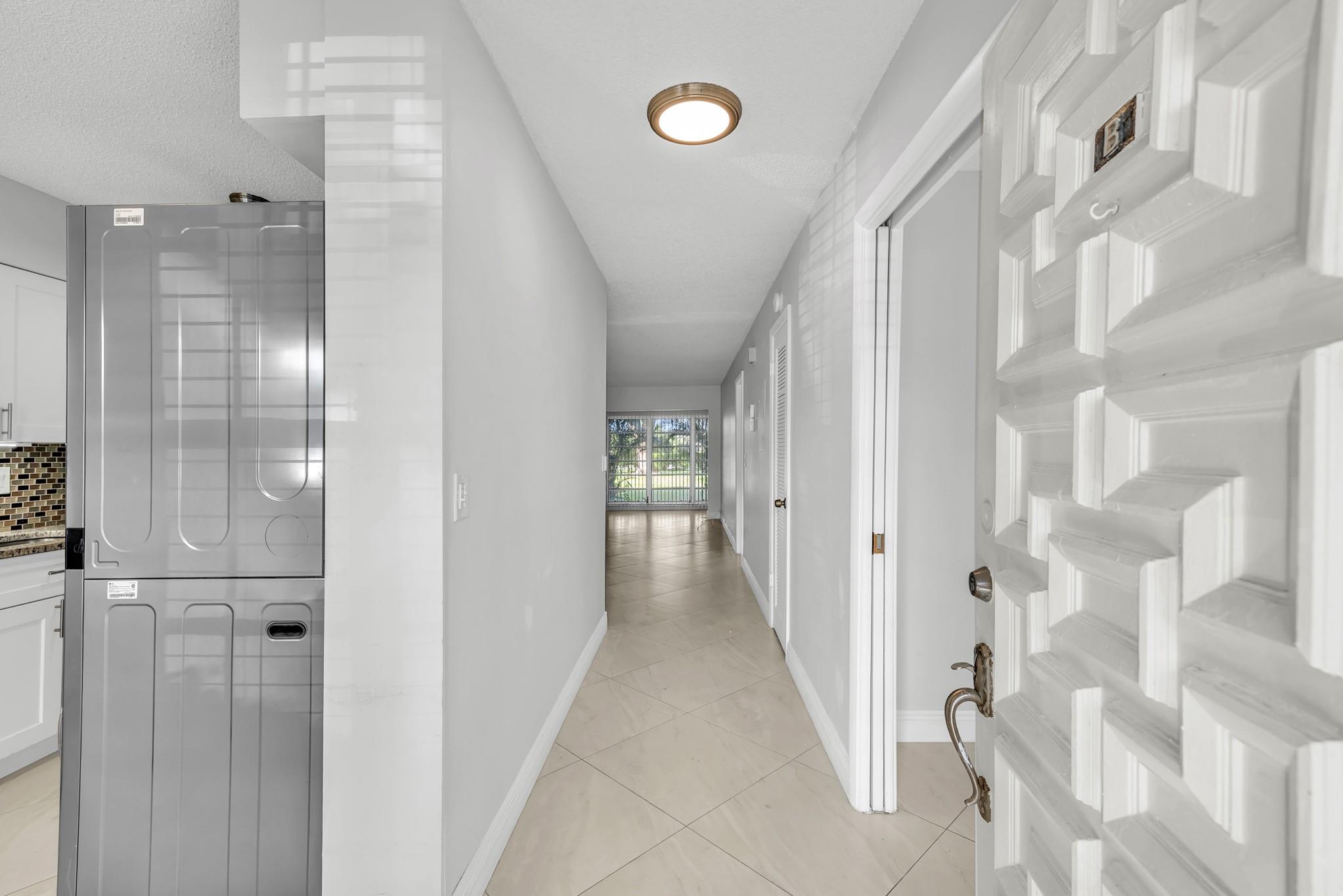 Beautifully updated and spacious 55+ ground-floor condo with no stairs and a private paver patio overlooking serene green space and the Villa Delray Golf Course. This light-filled home offers two generously sized bedrooms, each featuring a full ensuite bathroom and walk-in closet—a perfect layout for comfort and privacy. The kitchen has been tastefully upgraded with white shaker cabinetry and granite countertops, complemented by newer tile flooring throughout for a clean, modern feel. Enjoy the convenience of an in-unit washer and dryer, making everyday living effortless. This condo truly has it all—style, comfort, convenience, and peaceful golf course views. Ready for you to move in and enjoy!