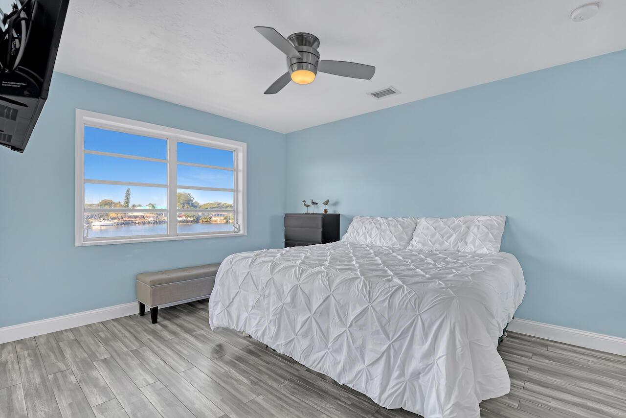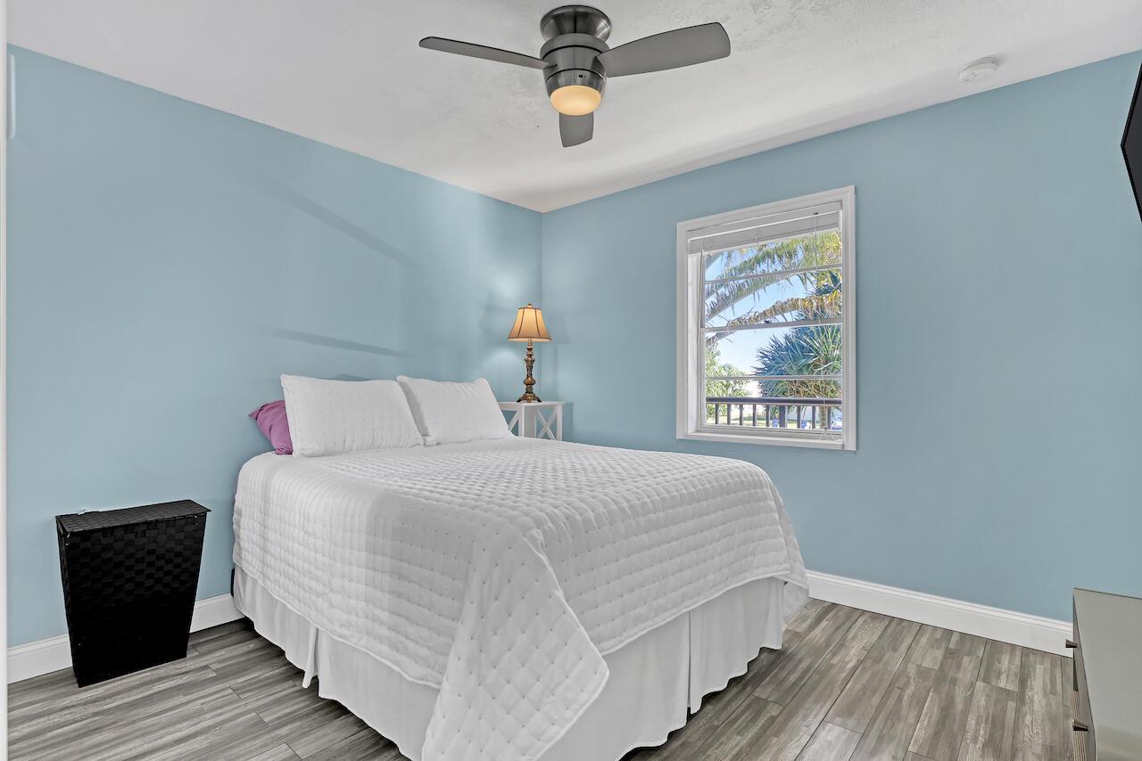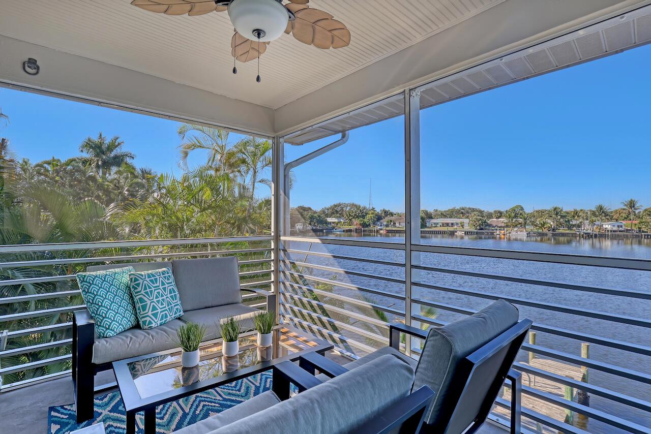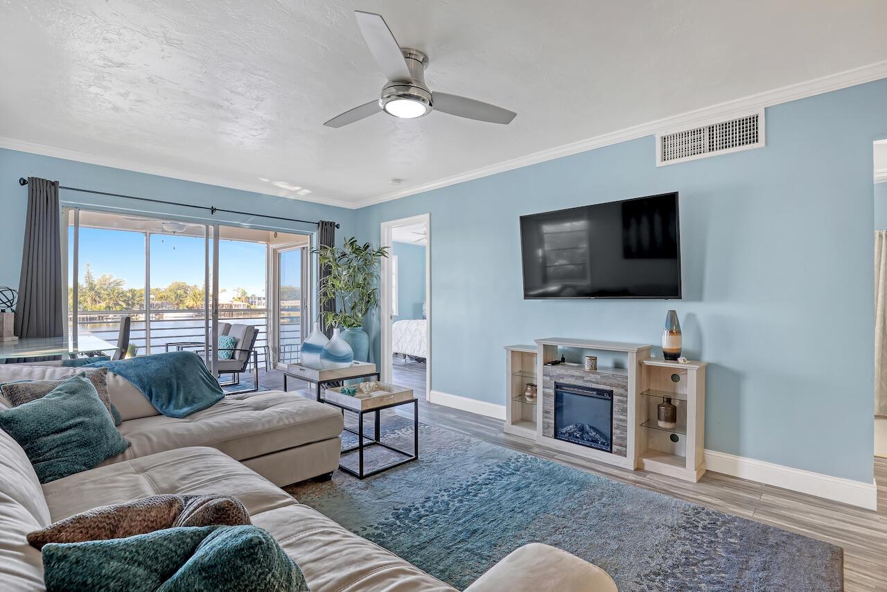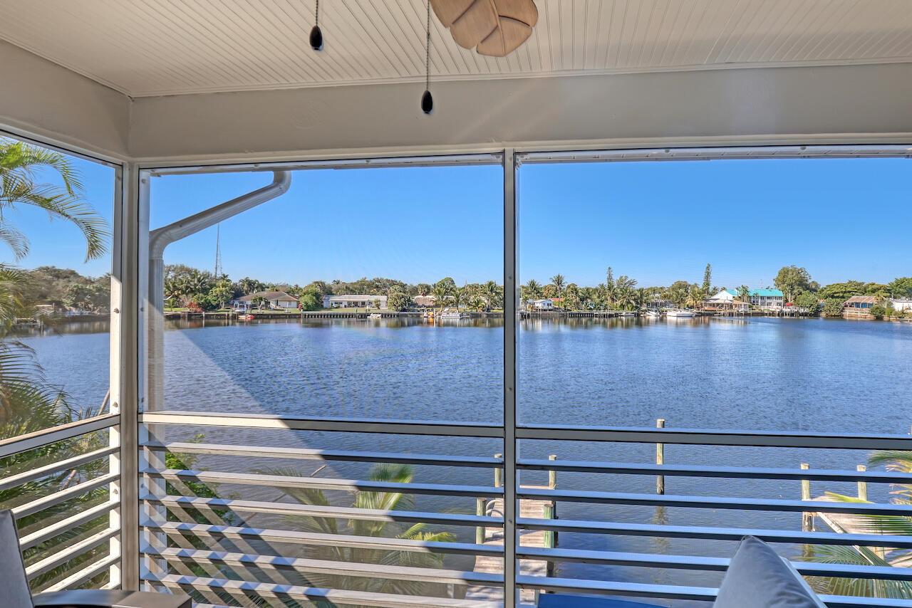 Welcome to a hidden gem directly on the water. This thoughtfully updated condo offers beautiful lagoon views and a peaceful setting filled with wildlife, fish, and wading birds. Enjoy indoor-outdoor living from the screened patio overlooking the lagoon, plus a dedicated dock for a boat up to 25 feet--ideal for boating, fishing from the dock, or watching manatees swim by. Ocean access is available beyond the fixed bridges, making this an exceptional find. Inside, the bright interior features an open living space, an updated kitchen with generous storage, and in-unit laundry for everyday convenience. Ideal as a snowbird retreat, tranquil full-time residence, or income-producing rental.
