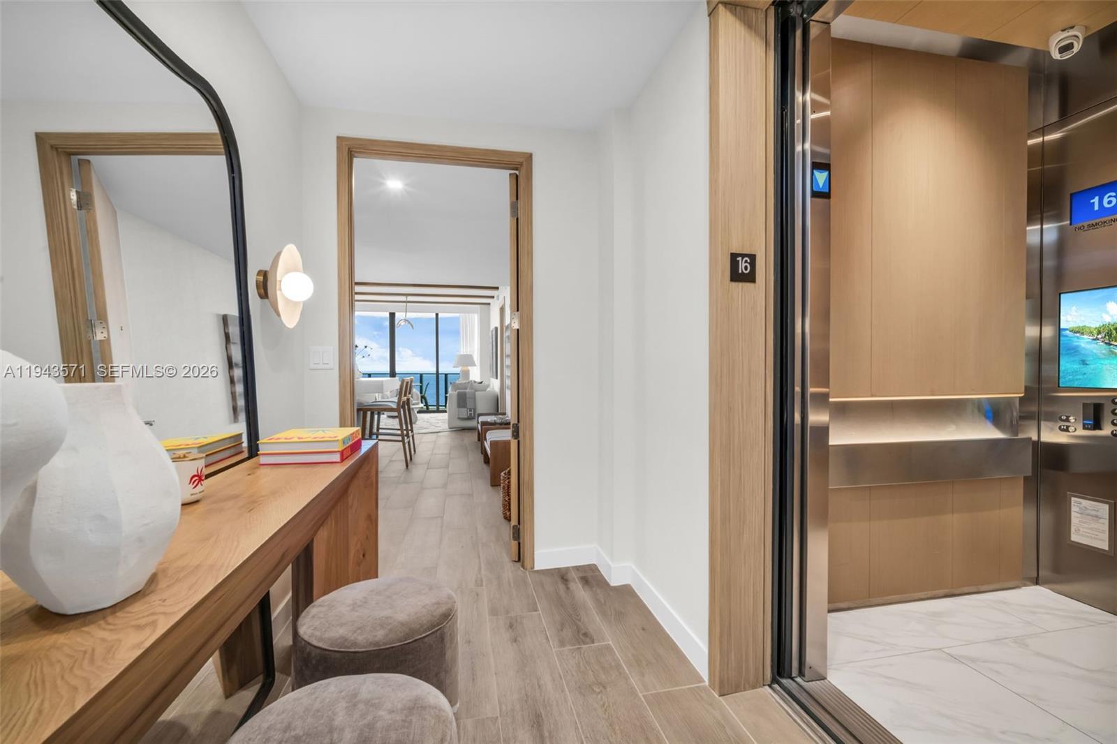 Direct oceanfront two bedroom two and a half bath plus den residence just completed and absolutely stunning, with breathtaking ocean views from every room. Thoughtfully designed and fully customized by Interiors by Steven G, no detail was overlooked, from the ceilings and walls to custom built ins, designer doors, fireplace, beautiful closets, wall and window coverings. Offered completely turnkey and fully furnished, this residence is truly move in ready. The spacious den works perfectly as a guest suite or additional sleeping area, making the home both functional and inviting. Enjoy private elevator entry, seamless indoor outdoor living, and a spectacular newly opened luxury building featuring pickleball, golf simulator, resort style pool with beach and pool attendants, state of the art fitness center, and elegant community spaces. All just steps from dining, shopping and everyday conveniences. TWO assigned valet spaces PLUS Storage Unit. This is a rare opportunity to own a custom designed, magazine worthy oceanfront residence that would take MONTHS to recreate, available to enjoy TODAY.
