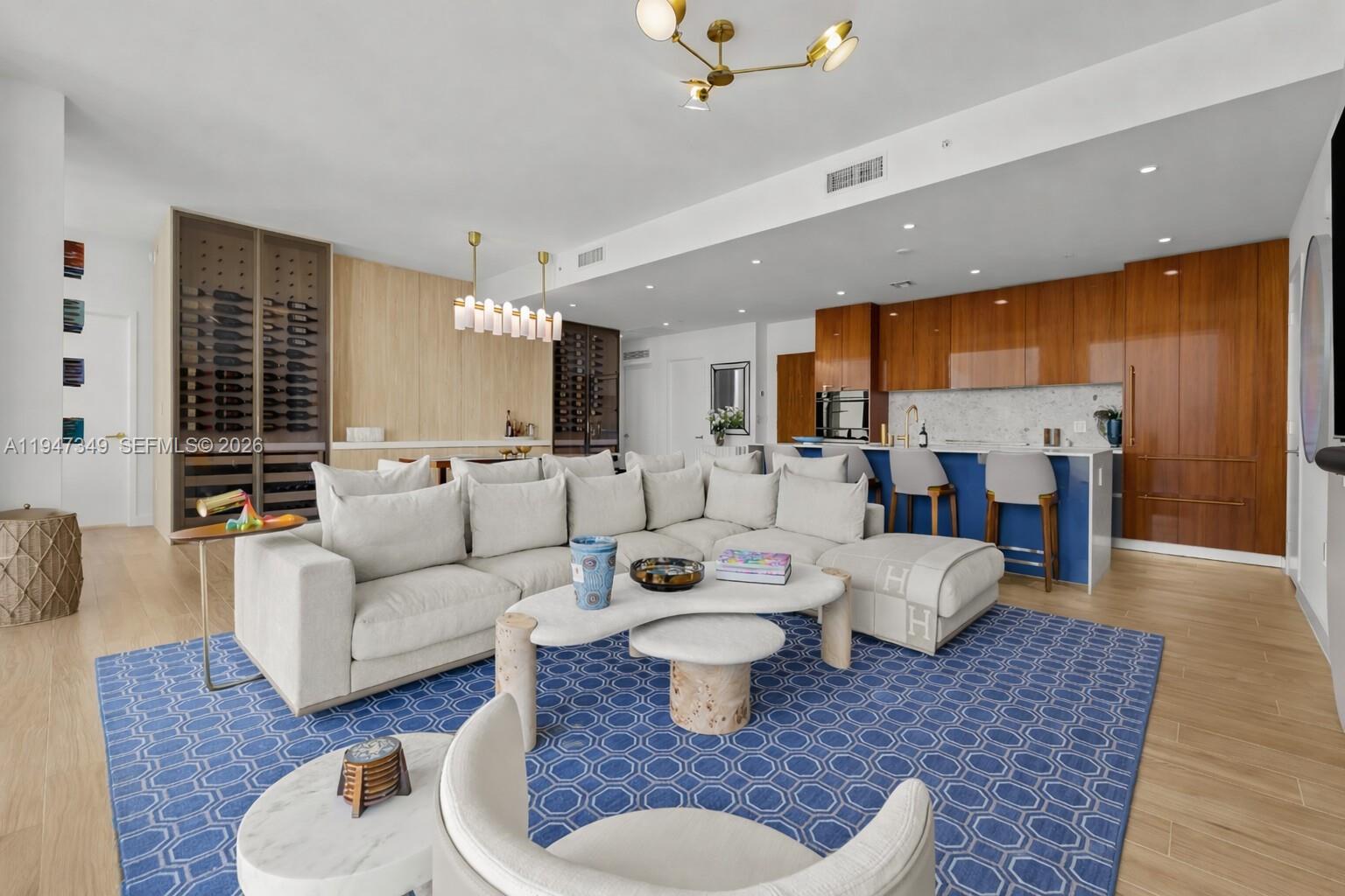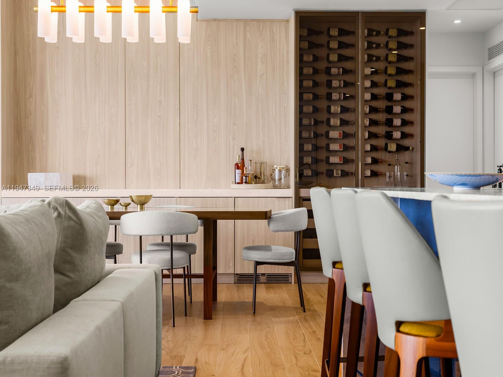 Soak in panoramic sunrise-to-sunset views of the Downtown Miami skyline and bay from this expansive 3-bedroom, 3.5-bath corner residence. Thoughtfully designed with refined Italian terrazzo and quartz countertops, the home features a custom walk-in pantry, dedicated laundry room, bespoke closets and a striking custom wine display. European porcelain tile floors blend seamlessly with engineered wood, while nearly 2,000 square feet of interiors are complemented by 477 SF wraparound terraces ideal for indoor-outdoor living. Residents enjoy world-class amenities including a dramatic rooftop pool, garden-level lap pool, cabanas, jacuzzi, poolside service, full-service fitness and wellness facilities, Cipriani dining and gourmet market, children’s playroom, 24-hour concierge and butler services, plus two valet parking spaces and a 4'x 8" air-conditioned storage.