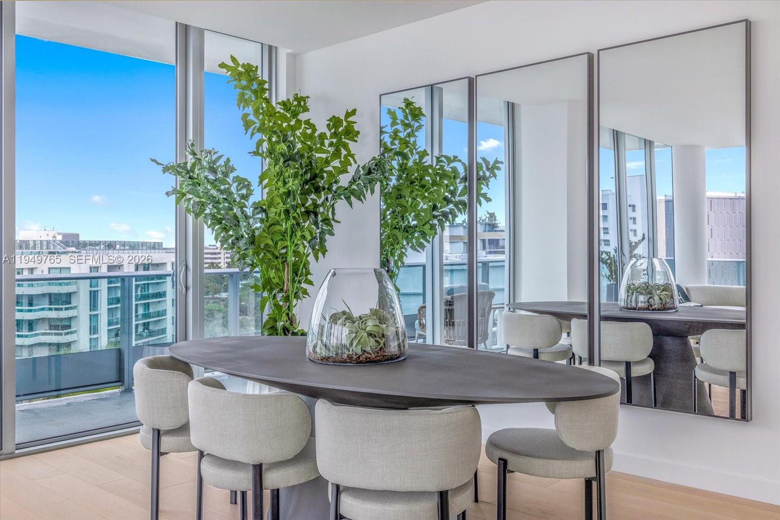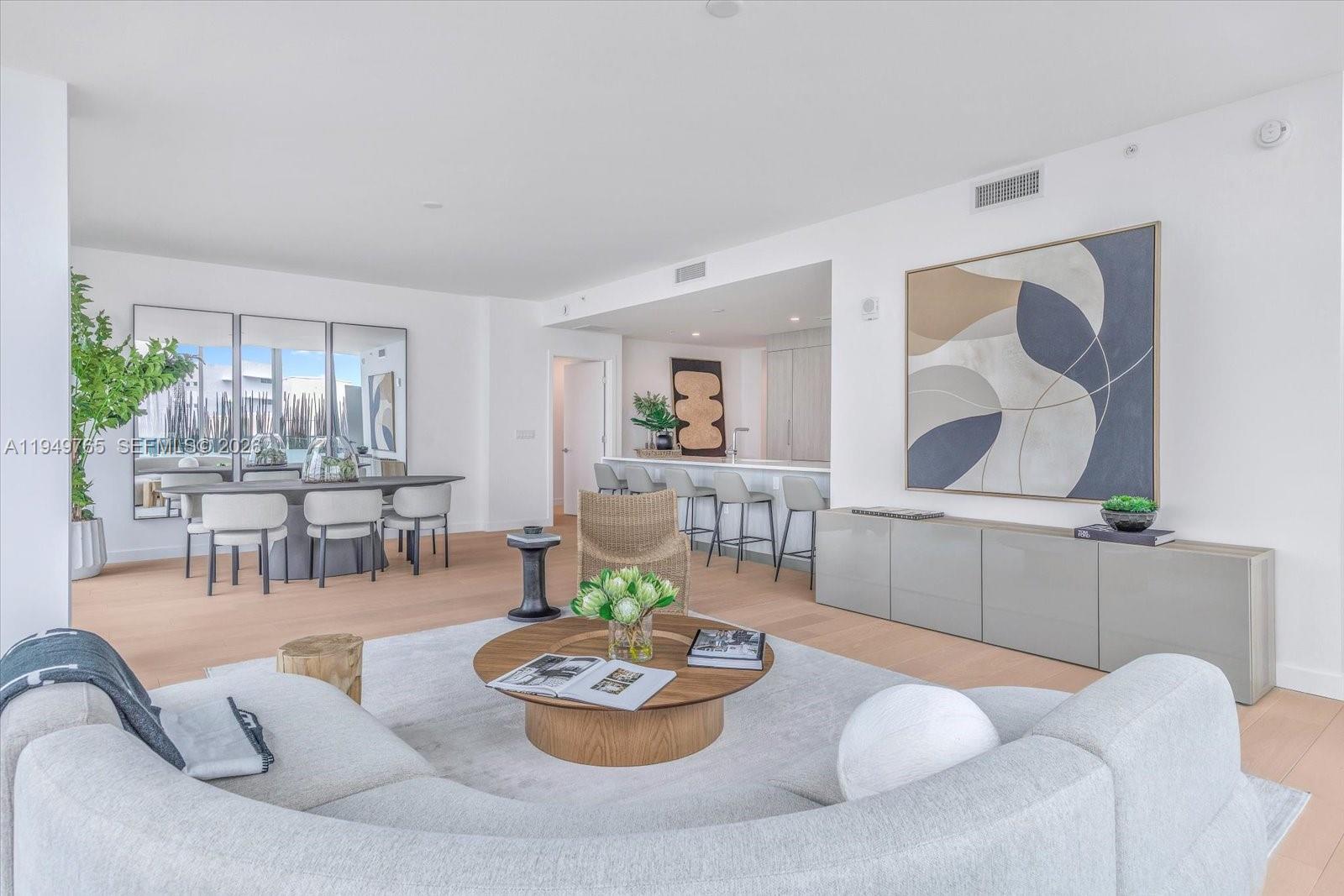 The Parkview Penthouse at La Baia South is a quiet, elevated residence where proportion, materiality, and light shape the design. Located on the eighth floor, this three-bedroom residence with den spans 2,068 interior square feet, complemented by 399 square feet of wraparound private outdoor space. Interiors feature imported European wide-plank wood flooring, ten-foot ceilings, and floor-to-ceiling, impact-resistant glass that brings in natural light and frames park-facing views with select water sight-lines from the terrace. The kitchen is thoughtfully integrated into the living space with custom European cabinetry, quartz stone countertops, a pantry, and a full Miele appliance package. Fixtures and finishes throughout the residence are curated by New York–based Durukan Design, with Hansgrohe fittings providing a refined, modern finish. Bathrooms are appointed with natural marble stone flooring, glass and chrome showers with dual rainfall showerheads, and custom European vanities. In-residence laundry includes a Miele washer and dryer, completing a residence defined by architectural clarity and carefully selected materials. La Baia is the latest project from visionary New York developer Ian Bruce Eichner who is credited with placing Miami Beach’s prestigious South of Fifth neighborhood on the map with the arrival of the Continuum South Beach. Upper Penthouse 02 comes with storage unit. Dock slips available for sale. Sold separately.