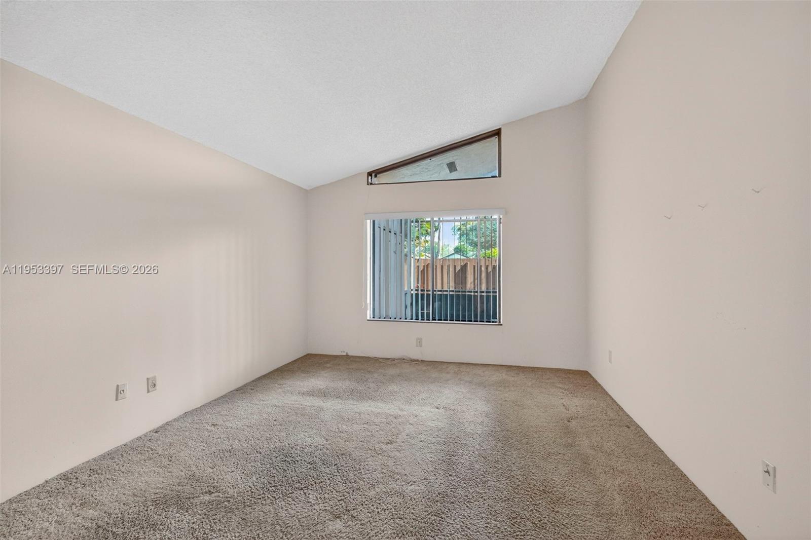 Just under 1,200 square feet of living space, this 2-bedroom, 2-bath villa with vaulted ceilings is located in the heart of Plantation within Omega Villas. The expansive great room offers an ideal layout for entertaining, complemented by an eat-in kitchen with ample countertop and cabinet space. The primary suite features a large walk-in closet plus an additional secondary closet, while the oversized second bedroom feels like a second primary suite, filled with natural light and well suited for a home office or guest space. Enjoy a huge screened-in covered patio with private backyard space. Recently paid assessments include exterior improvements such as reinforced and re-stuccoed windows, a full exterior repaint, and completed fencing throughout. Parking is convenient with one assigned owner space and one guest space directly in front of the unit, along with additional guest parking available. An excellent opportunity to personalize and make it your own.