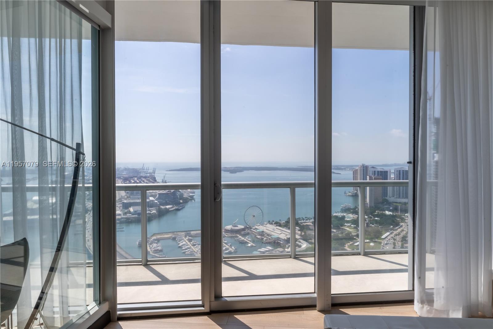 Experience Marina Blue’s coveted 08 line, known for its sweeping, unobstructed views spanning Sunny Isles, Miami Beach, Key Biscayne, Edgewater, Brickell, and Downtown Miami. One of only three residences crowning the building’s uppermost waterfront tier, this high-floor home offers a rare panoramic vantage point seldom available. Featuring 10-foot ceilings, the residence has been thoughtfully updated with brand new flooring and a refined floor plan designed to enhance the living area and fully capture its panoramic exposure. The home offers 2 bedrooms, 2 baths, floor-to-ceiling glass, electric blackout shades, in-unit washer and dryer, and stunning water and skyline views from every room. An additional west-facing balcony provides sunset and city light views. Ideally located across from Kaseya Center and one block from Miami Worldcenter, dining, shopping, and the Apple Store. Marina Blue offers resort-style pools, fitness center, business center, jacuzzi, BBQ areas, mini market, and CVS on site. A limited opportunity for the next fortunate owner at the architectural apex of the 08 line.