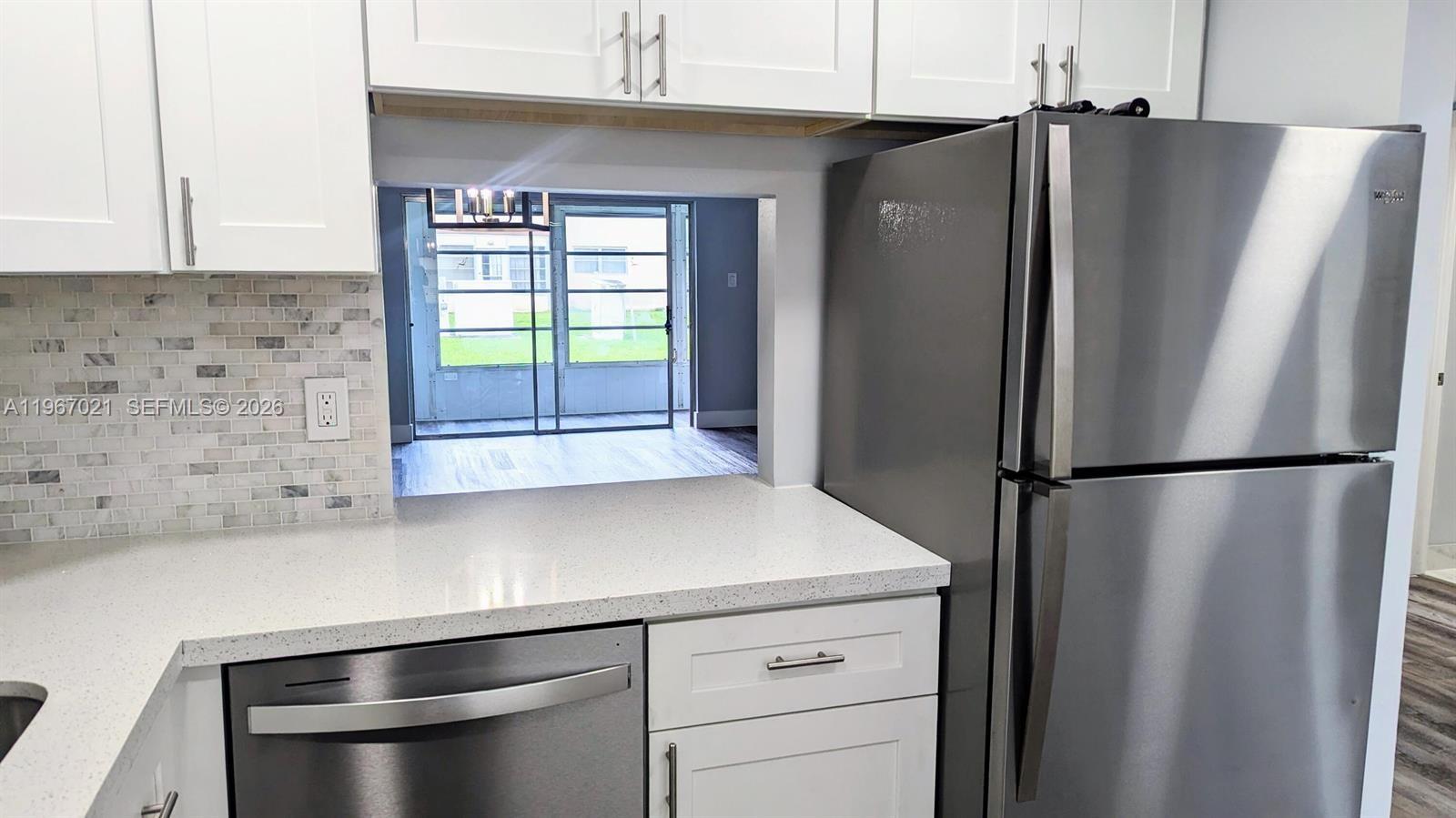 Fully renovated in 2024, this condo offers a bright, inviting layout with a beautifully updated kitchen featuring stainless steel appliances, impact windows, modern finishes, and vinyl flooring throughout. Both bathrooms were completely renovated with contemporary materials and clean, stylish design. The community offers two pools, a gym, and an amphitheater, and is peaceful, friendly, and centrally located near the major roads, hospitals, shopping, restaurants, parks, and just 20 minutes from the beach. Move-in ready and priced for a quick sale.