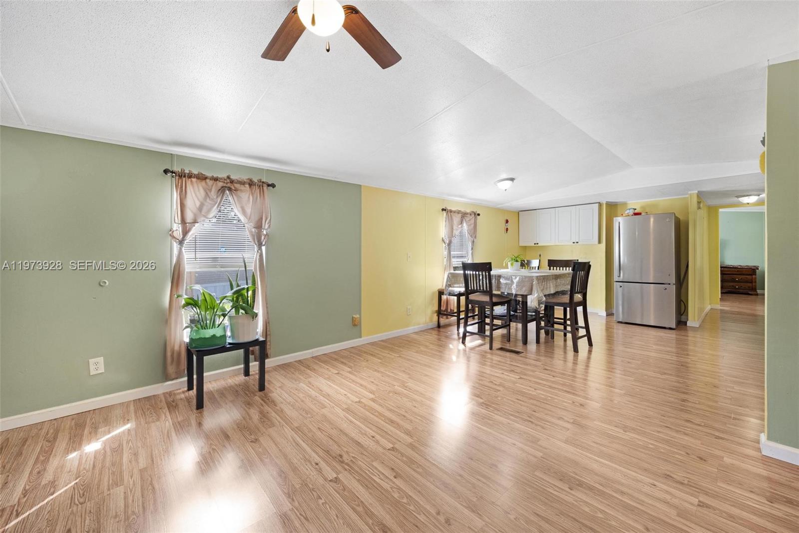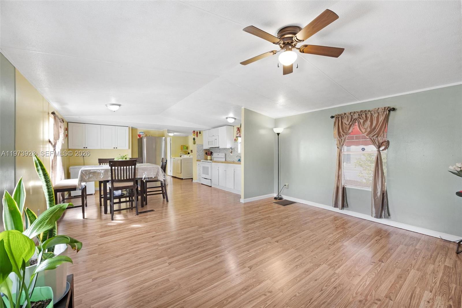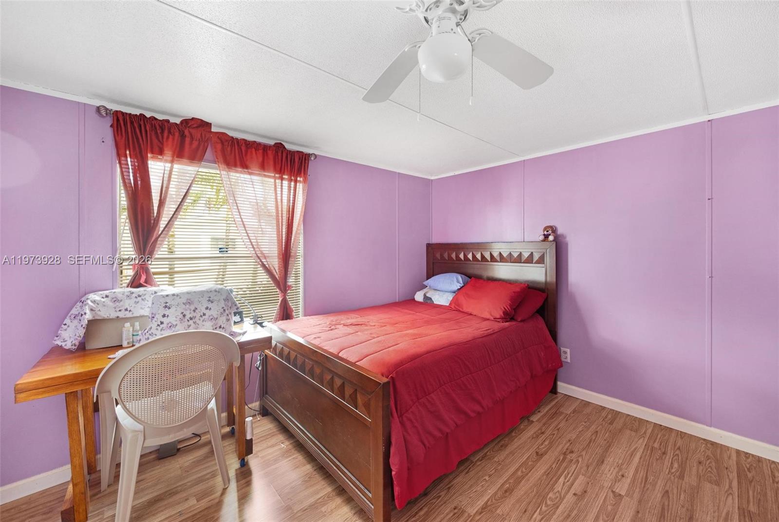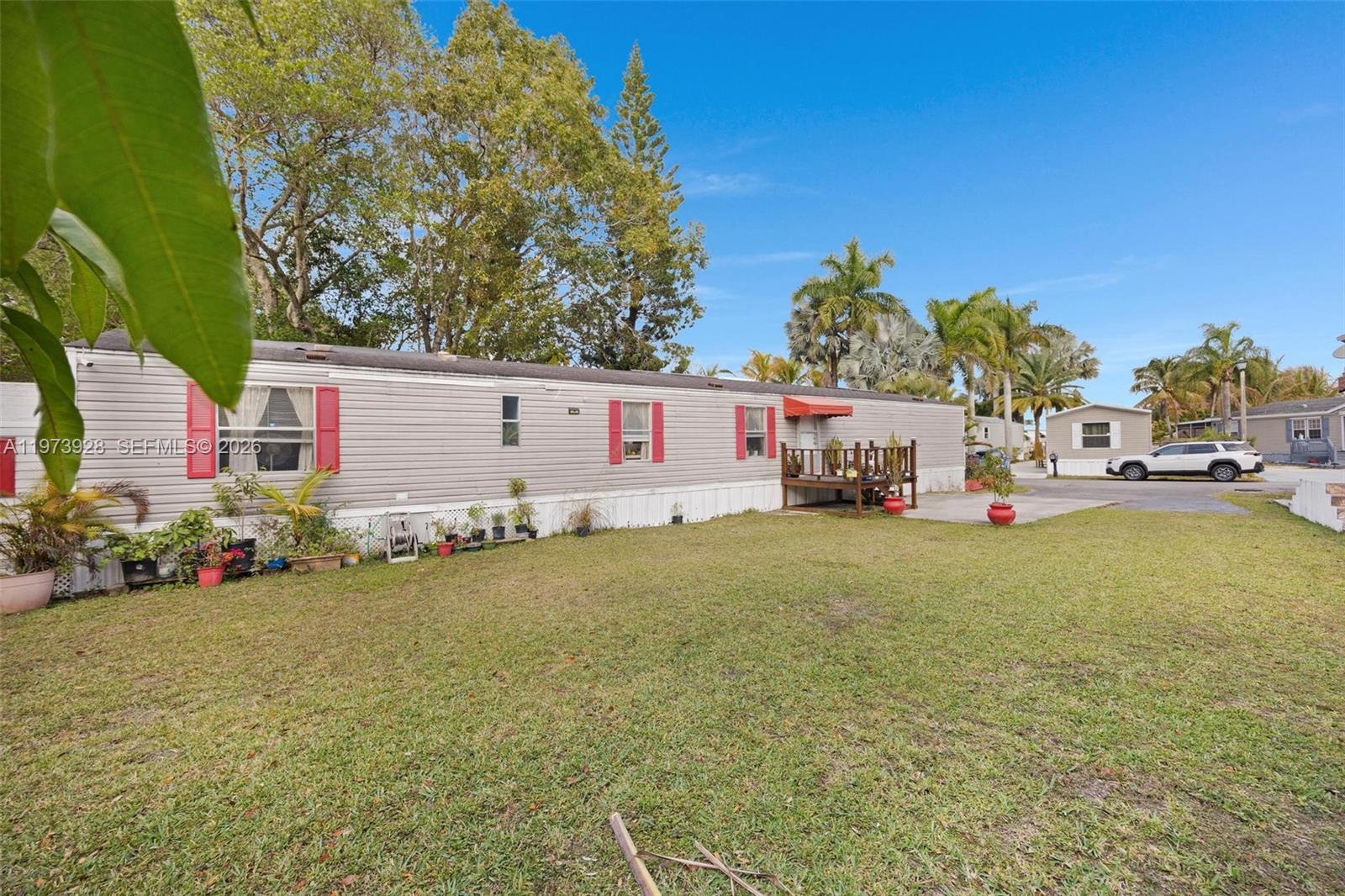 Spacious 3-bedroom, 2-bath, 1,200+ SF manufactured home located in a quiet, gated community in Homestead. This well-maintained residence offers comfortable living with generous room sizes and a functional layout. Step outside to your own tropical backyard setting featuring mature mango, avocado, and papaya trees, along with plenty of outdoor space to enjoy. A detached shed in the rear provides flexible space ideal for a home office, workshop, or additional storage. Residents enjoy access to a clubhouse, pool, basketball and shuffleboard courts, playground, and other community amenities. Conveniently located near shopping, dining, and major roadways. Low monthly fees and low taxes add to the value of this great opportunity.