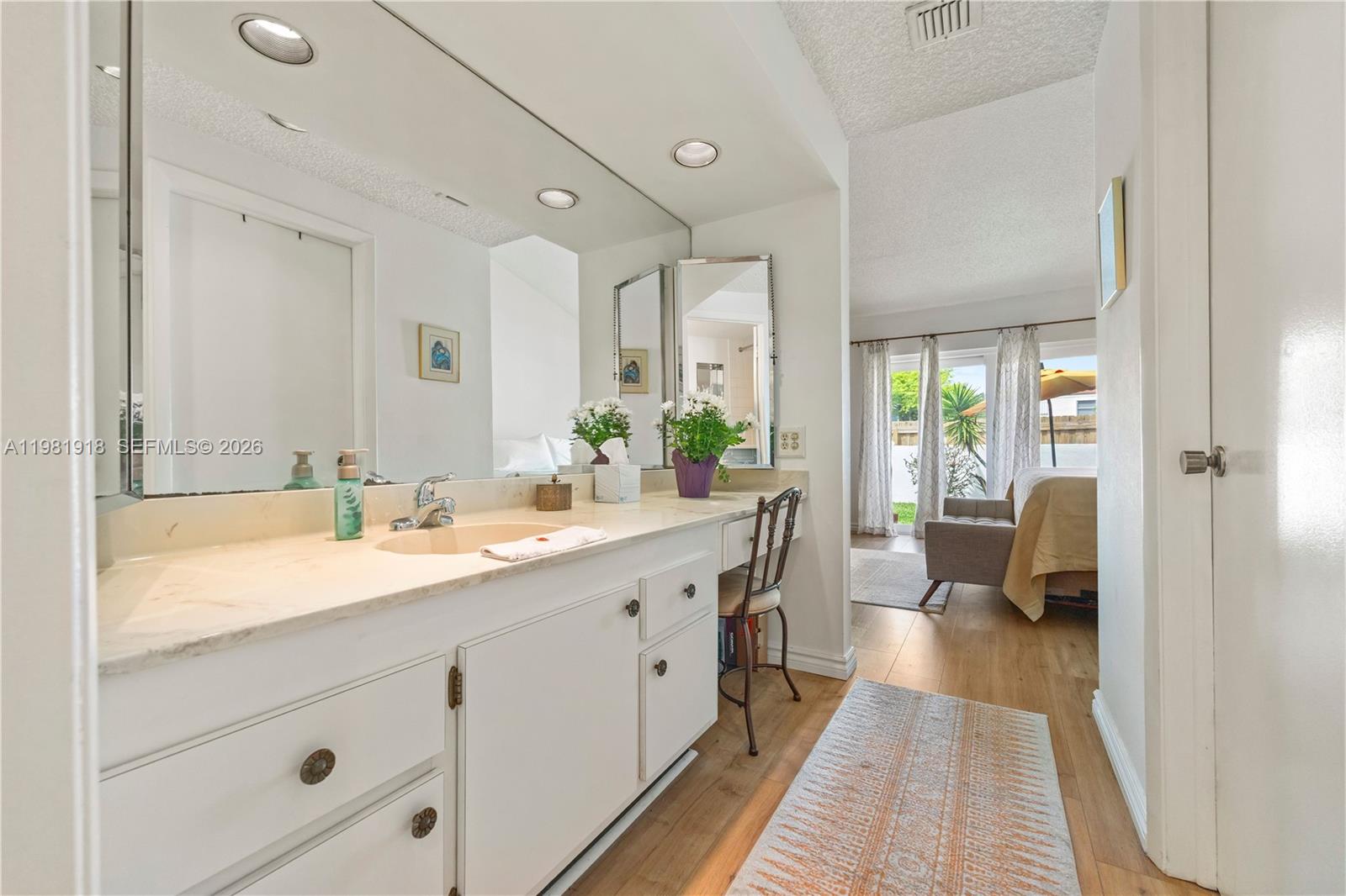 Location, location, location!!! Wonderful opportunity to live in this fantastic villa in gated community close to everything. No car needed here. This impressive, large 1,700 square feet 2 bedroom 2 bath with added office/hobby room, is an immaculately kept, single story villa with soaring ceilings. Lots of natural light from high impact glass windows throughout. Kitchen has been beautifully renovated. Lovely private patio. Must see this one to appreciate. Community pool with lake to enjoy the surrounding nature. 2 parking spaces outside your front door. New appliances including washer/dryer in separate laundry room. Walk to restaurants, shops, house of worship and so much more. Short drive to Beach, Banks, Aventura Mall, I-95 and/or Turnpike. City transit right outside of gated community.