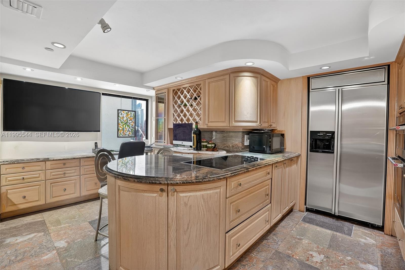 Welcome to The Grand on Bayshore Drive. This stunning corner residence on the 24th floor offers over 1,840 square feet of living space, featuring breathtaking bay views and a spacious balcony overlooking Margaret Pace Park and Miami Beach. Originally designed as a 3-bedroom, 3-bathroom unit, the layout has been thoughtfully modified to create a luxurious formal dining room—easily convertible back into a third bedroom if desired. The residence is equipped with impact windows and doors throughout, and the kitchen was tastefully updated approximately 10+ years ago. Custom marble flooring through out, generous floor plans with open living room and formal dining room all with great views. The primary suite is a true retreat, complete with a comfortable sitting area and a spa-like on-suite bathroom designed for relaxation. The Grand is a highly sought-after building that allows short-term rentals, making it ideal for both end users and investors. Residents enjoy resort-style, 5-star amenities including a pool, state-of-the-art fitness center, retail shops, five on-site restaurants, and 24/7 valet service. Perfectly located just minutes from Miami Beach, Wynwood, Downtown Miami, and Miami International Airport, this property offers the ultimate in convenience, lifestyle, and investment potential.